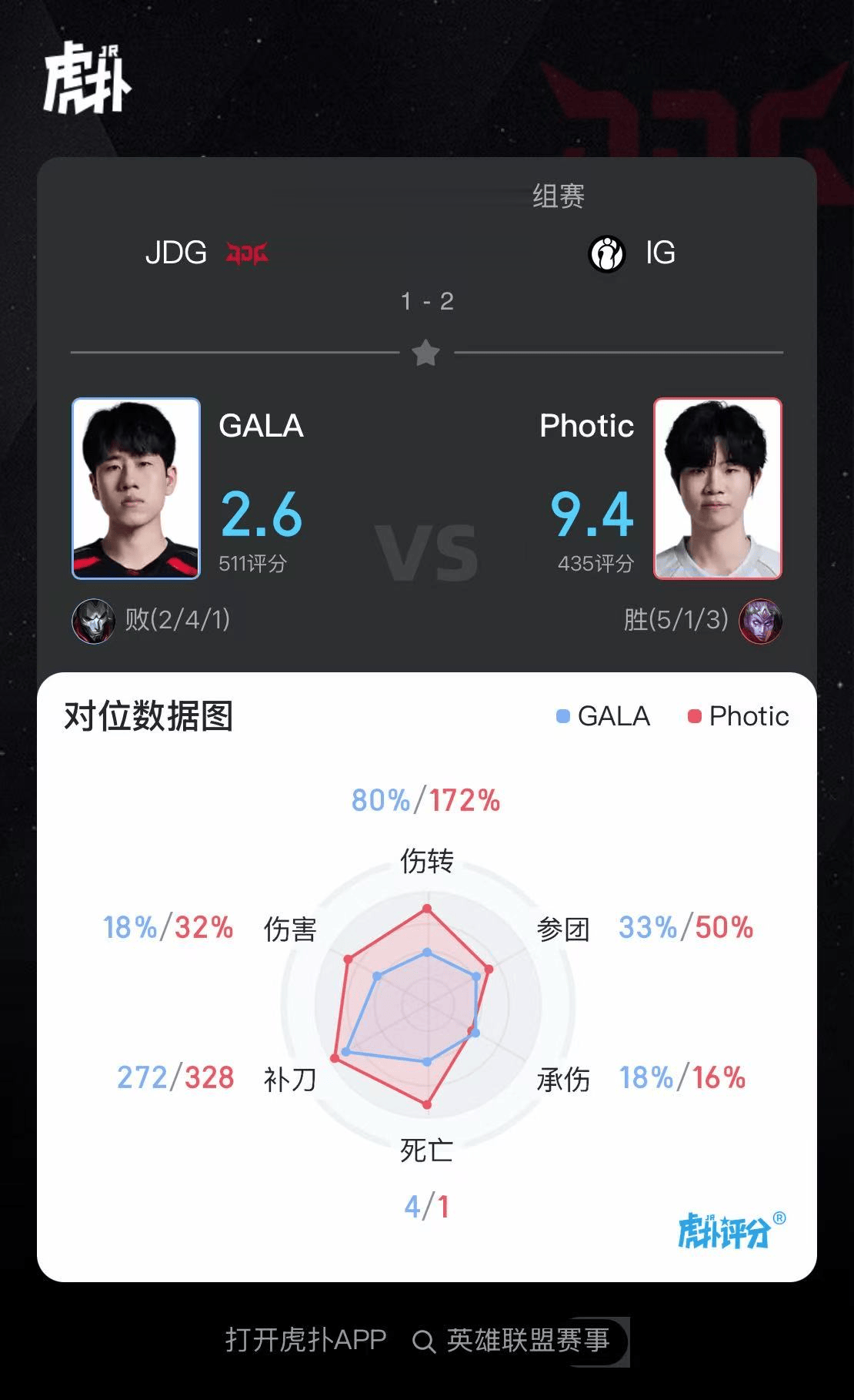 虎扑01月17日讯在刚刚结束的IG对阵JDG的BO3比赛中,Photic韦鲁斯打出5/1/3战绩,斩获IG对阵JDG第三局MVP