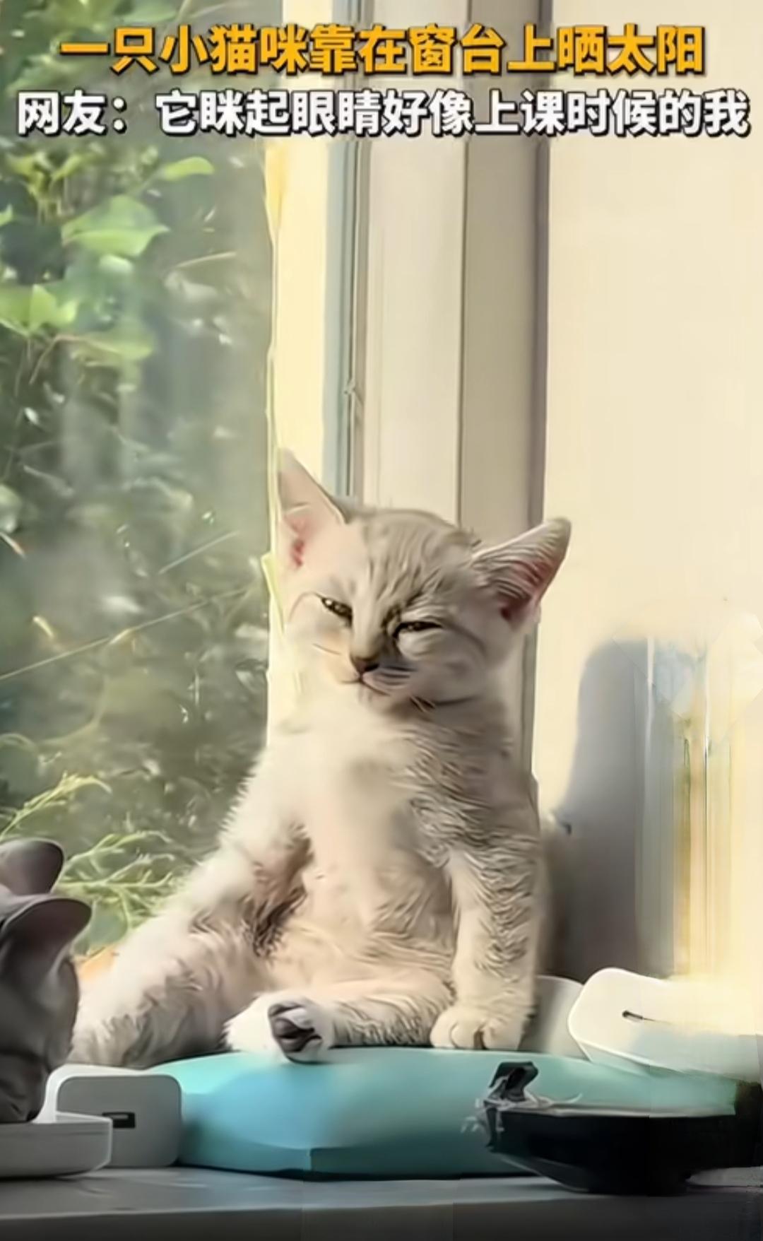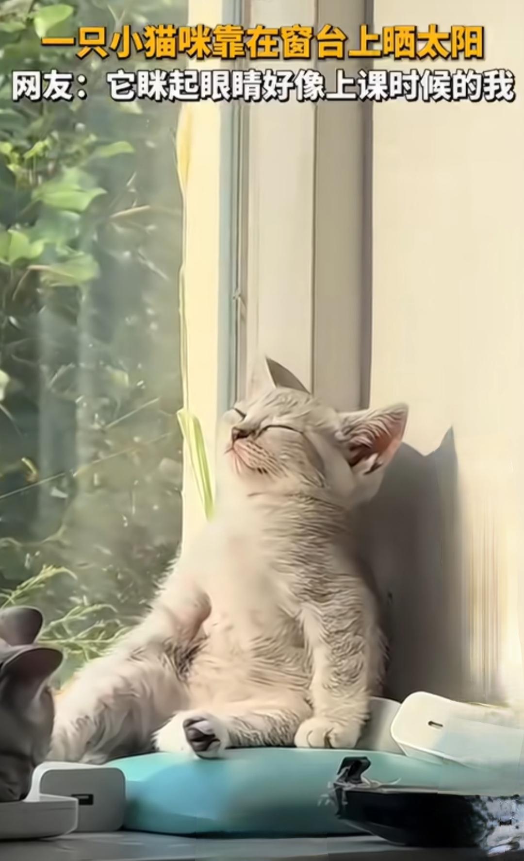一只小猫咪乖乖靠在窗台上晒太阳,圆乎乎的身子蜷成一小团,脑袋轻轻搭在窗沿上,眼睛眯成两条细细的缝,只剩毛茸茸的脸蛋和耷拉的小耳朵,连尾巴都懒得动一下,慵懒又惬意的模样被主人拍下上传后,瞬间戳中全网网友的笑点,评论区齐刷刷刷屏:这神态,简直和上课时候的我一模一样! 谁看了这只小猫不感叹一句精准复刻啊!你看它那半睁不睁的眼睛,明明困到灵魂出窍,却还硬撑着不肯彻底闭眼,像极了上课铃一响就犯困,想趴桌睡觉又怕被老师点名,只能强撑着眼皮点头晃脑,脑袋不受控制往下低,又猛地惊醒的我们。 阳光暖洋洋洒在身上,暖意裹着困意扑面而来,那种眼皮打架、浑身发软,只想放空发呆的感觉,小猫懂,打工人懂,学生党更懂!它不用赶早八,不用应付难缠的工作,只需要舒舒服服晒着太阳睡大觉,而我们却只能在课堂上、工位上,羡慕着这只小猫的惬意,偷偷借着书本遮挡,眯上几秒偷闲。 有人说这是小猫版“岁月静好”,也有人调侃这是“全网统一上课犯困表情包”,还有网友晒出自己上课犯困的照片,和小猫神态简直无缝衔接。其实我们羡慕的哪里是小猫晒太阳,不过是羡慕它能毫无顾虑地放空,不用被生活推着赶路,能拥有一段只属于自己的慵懒时光。 生活再忙,也别忘了像这只小猫一样,找个时间晒晒太阳,偷个小懒,给自己紧绷的神经松松绑呀。搞笑 萌宠