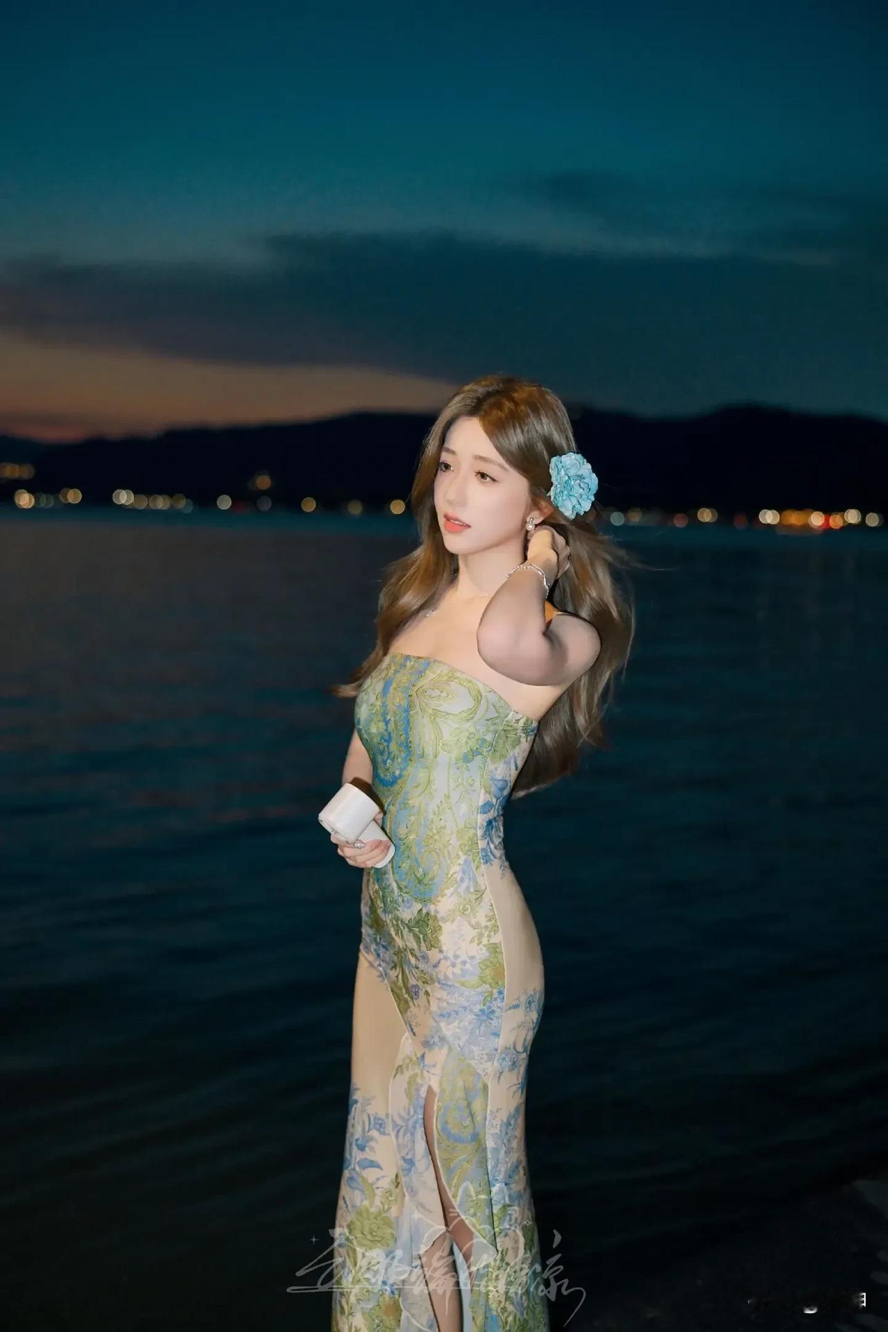 偶遇梨涡姐姐。 落日熔金, 湖水染霞, 一袭青绿入画, 宛如梦中江南。 西湖风景自拍 尼康 夜景人像 梨涡美女 西湖富士女摄 窗边梨涡写真 西湖熟龄写真 尼康微单人像