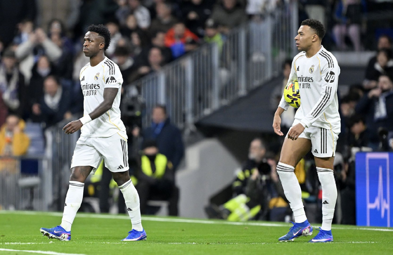 全场比赛结束,皇马主场2-0莱万特,维尼修斯在比赛结束时情绪非常低落,阿森西奥上