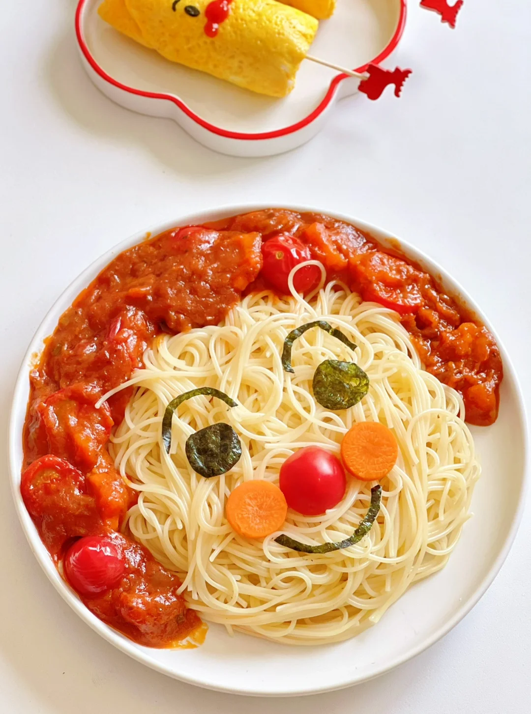 月亮超级迷恋番茄,有关于番茄的东西都很爱吃,所以番茄意面也是她的最爱之一,这次分享给大家一个可可爱爱的面包超人造型意面,这次面酱用的是怡芽家的,酱汁浓郁,简单又快手,5分钟搞定,超级适合懒人妈妈们,重点是孩子绝对会光盘呀!!