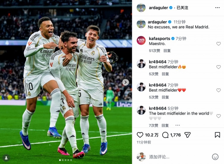 居莱尔社媒写道:没有任何借口,我们是皇家马德里。