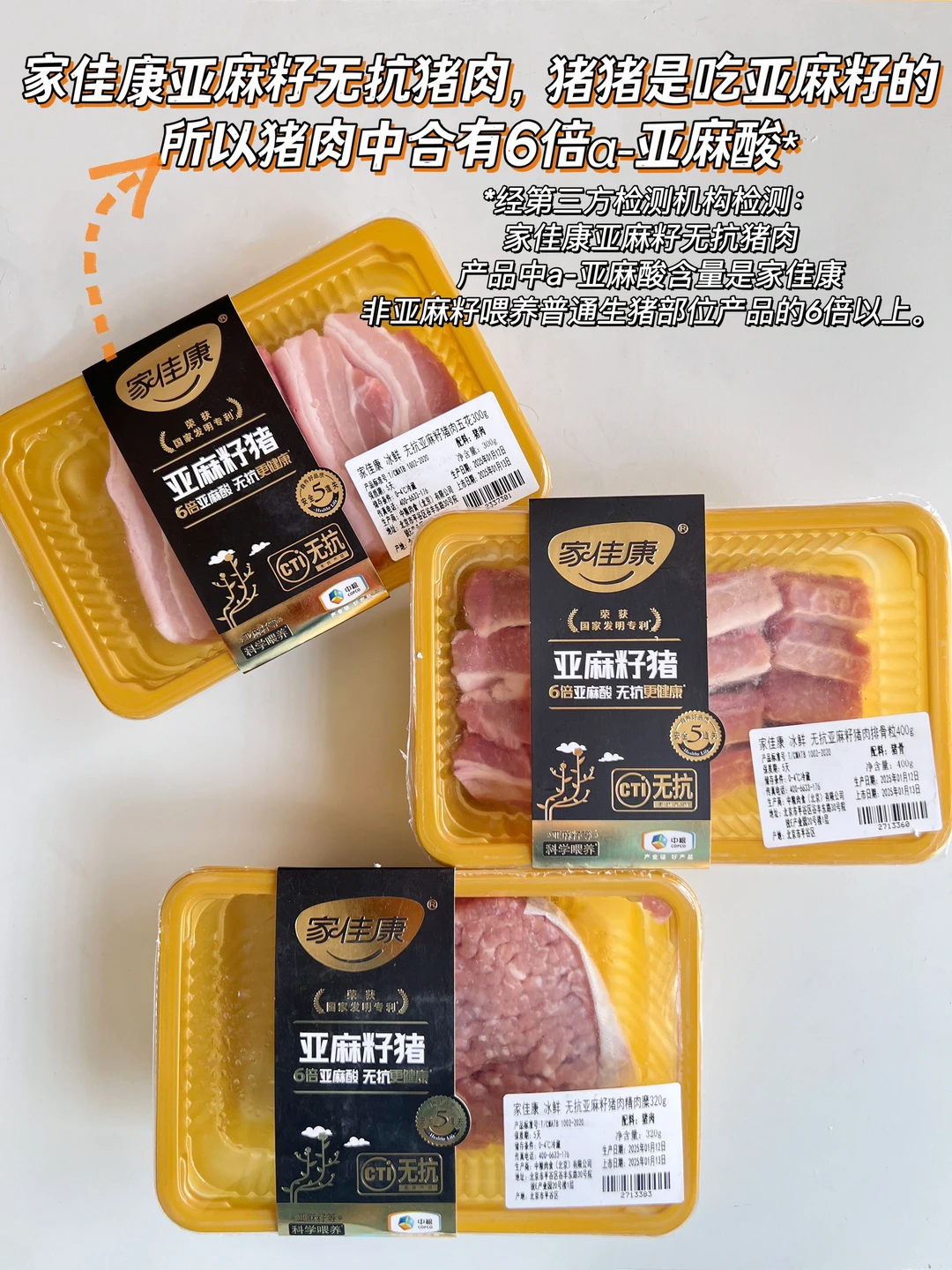 而且它家亚麻籽猪是获得无抗认证的健康肉,拥有6倍α-亚麻酸*。α-亚麻酸对孩子好处多多,能转化成脑黄金DHA,也正是因为这个,亚麻籽猪肉具有独特清新的谷物风味,香而不腻,口感Q弹。