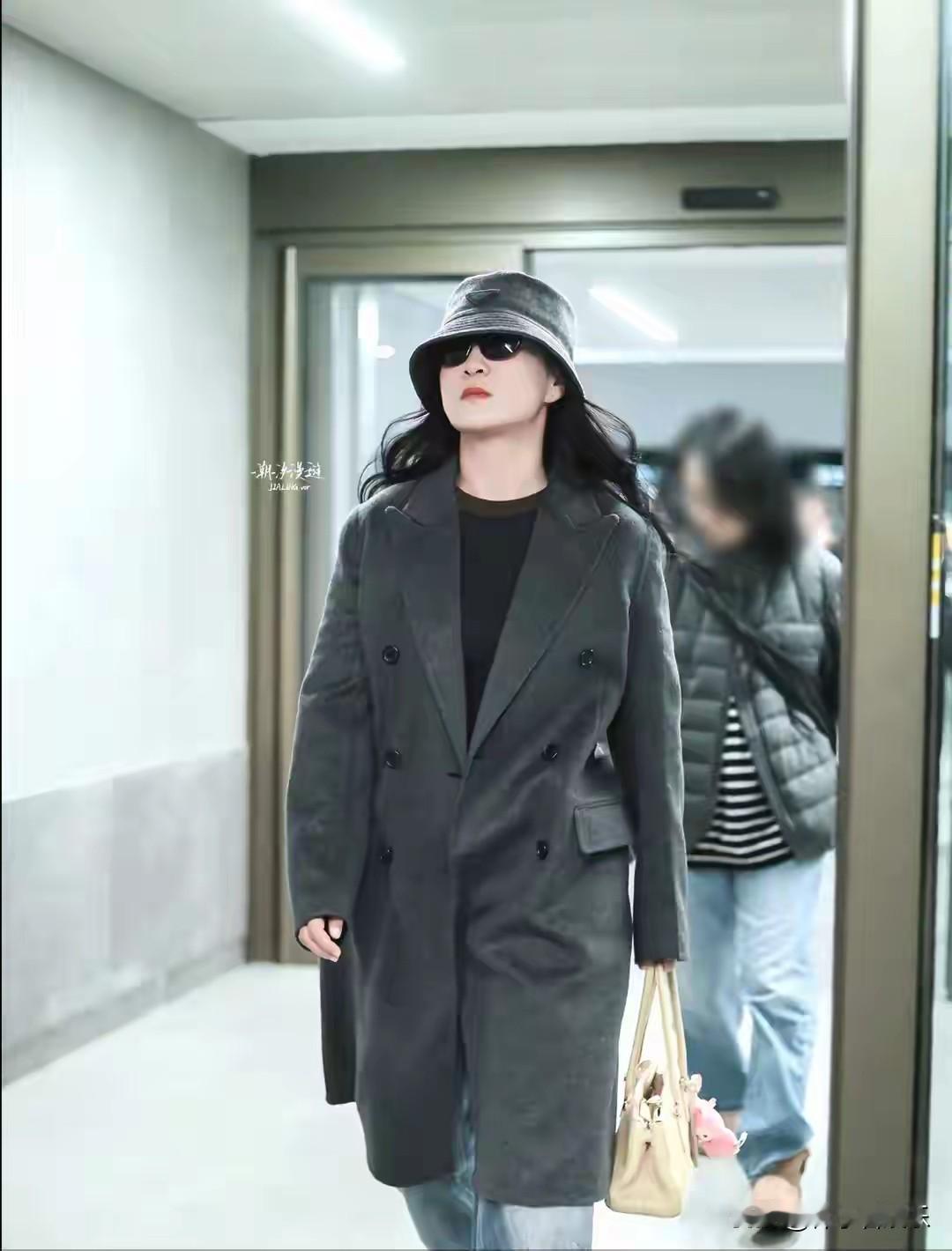 当日,贾玲现身机场,准备启程前往米兰时装周。她身着一件剪裁合体的灰色长款大衣,大衣线条流畅,质感上乘,既保暖又不失时尚感。她头戴同色系渔夫帽,压低的帽檐增添了几分神秘与酷感。下身搭配牛仔裤,简约而不失格调,整体造型休闲中透露出精致。贾玲手中拎着一个黄色小包,成为整体造型的亮点,为沉稳的灰色调增添了一抹亮色,展现出她独特的时尚品味。她步履生风,走路带风,气场全开,整个人看起来利落又干练,与以往在荧幕上幽默亲和的形象形成鲜明对比,让人眼前一亮。