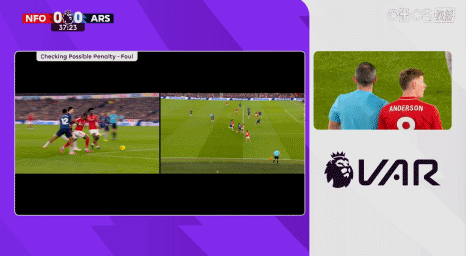 第38分钟,廷伯在本方大禁区边缘拉倒奥多伊,被主裁判出示一张黄牌,VAR介入,确认不是在禁区内犯规!↓