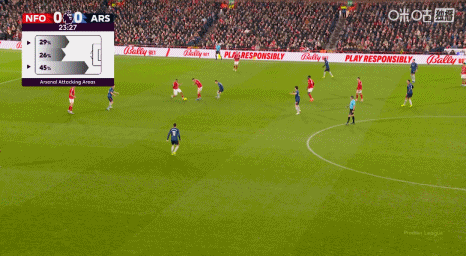 第29分钟,赖斯开出左路角球至禁区内,后点被对方头球解围,马杜埃凯禁区右侧迎球抽射,马丁内利门前包抄小角度推射,球稍稍偏出立柱!↓