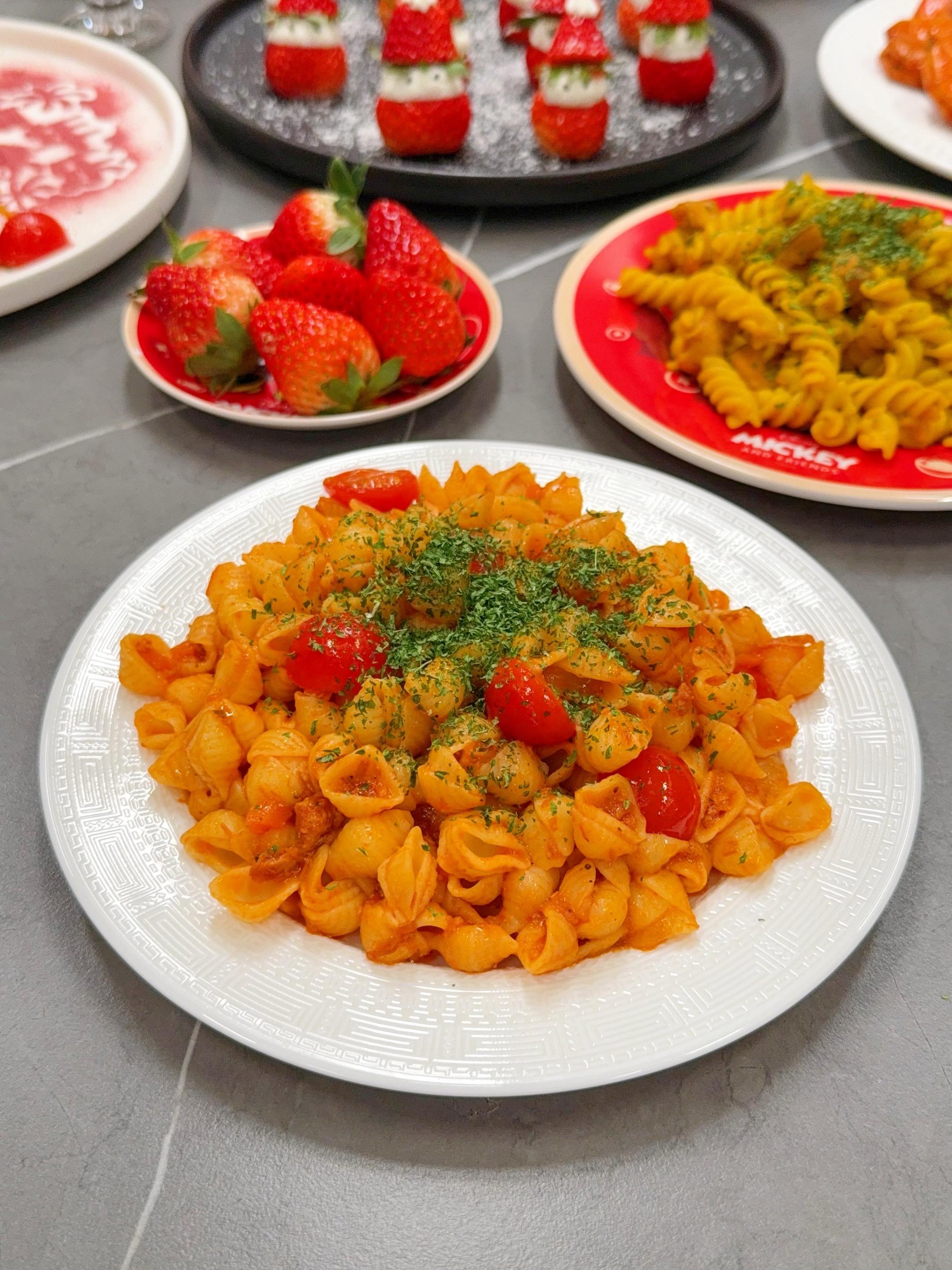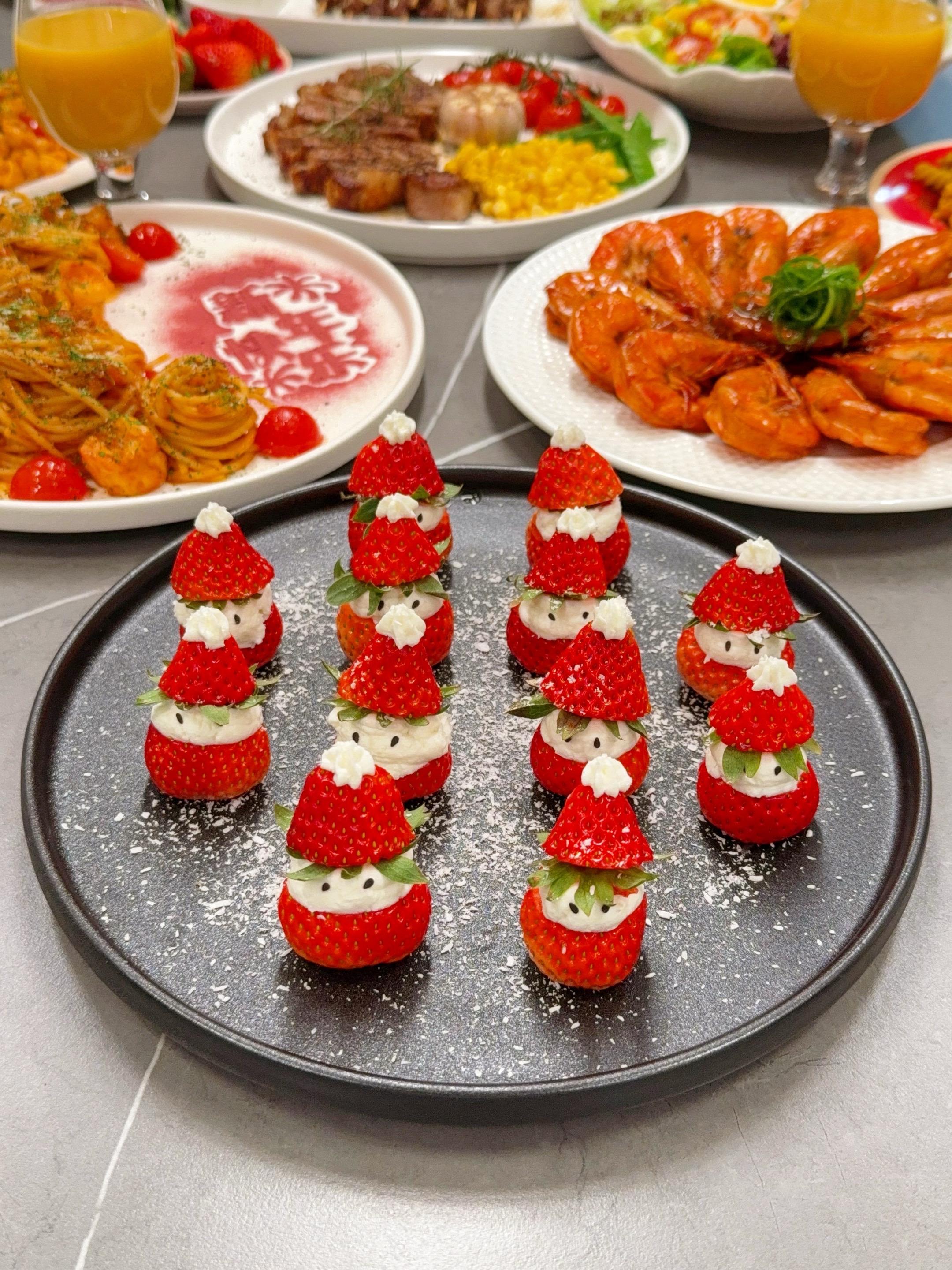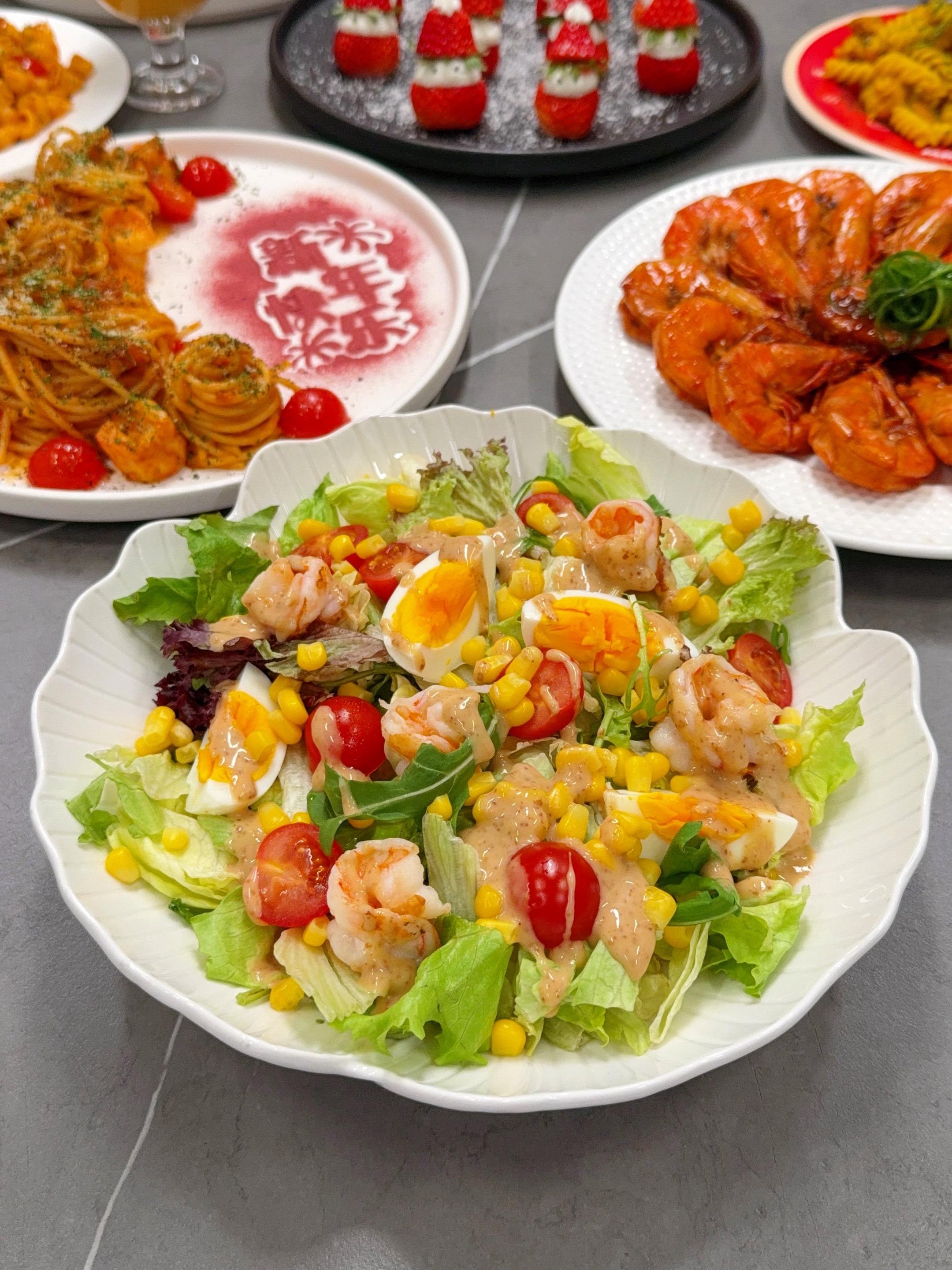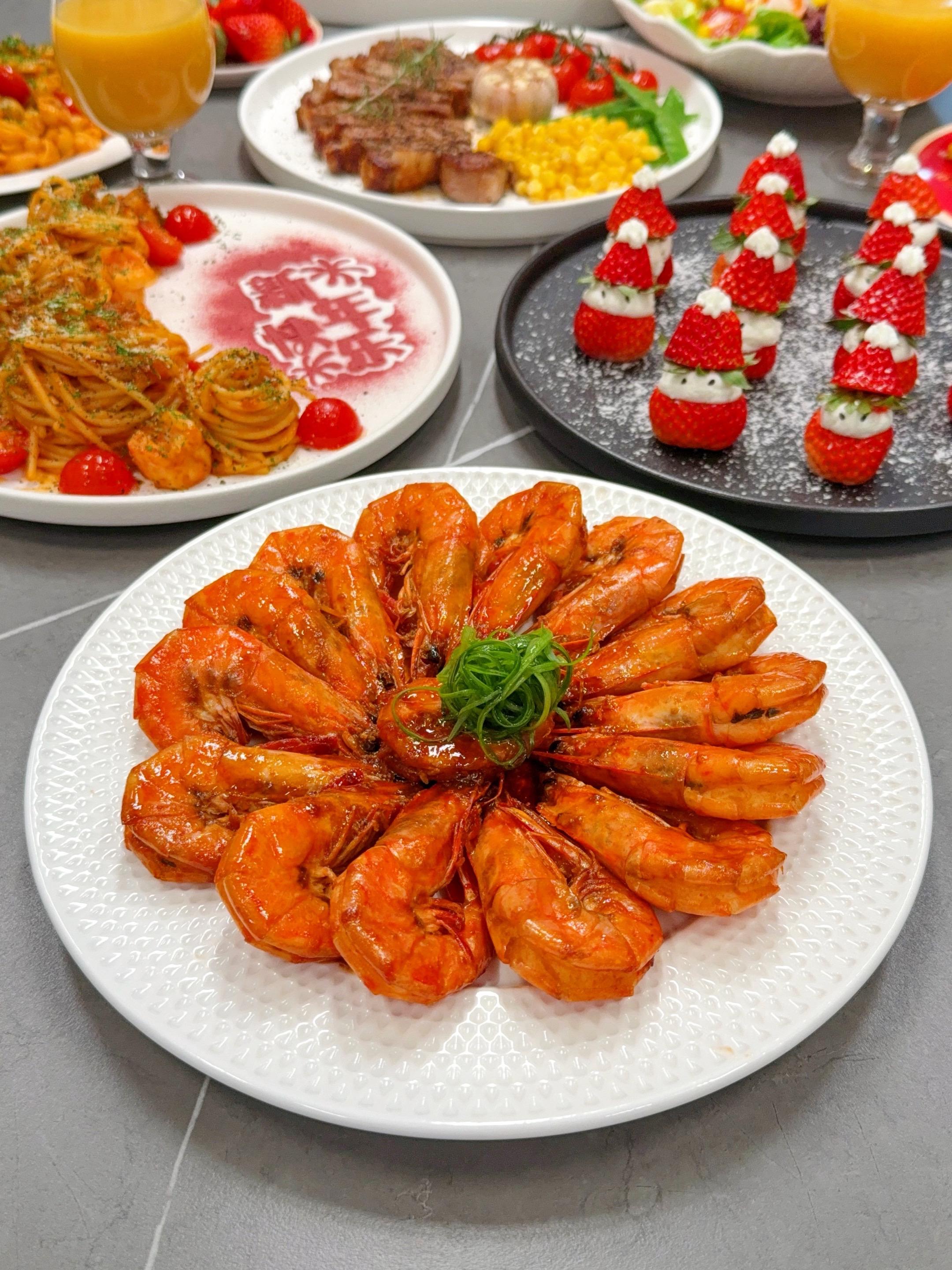 新年家宴|在家轻松搞定餐桌仪式感。新年倒计时,厨房的灯光总是暖暖的💡 今天做了一桌做“中西合璧”的家宴招待朋友,既有熟悉的年味,又有新鲜的惊喜。 🧧新年家宴菜单分享: ❶【油焖大虾】 ❷【煎西冷牛排】 ❸【番茄肉酱意面】 ❹【法式奶香贝贝南瓜鸡肉意面】 ❺【儿童番茄肉酱意面】 ❻【烤羊肉串】 ❼【小米南瓜羹】 ❽【蔬菜沙拉】