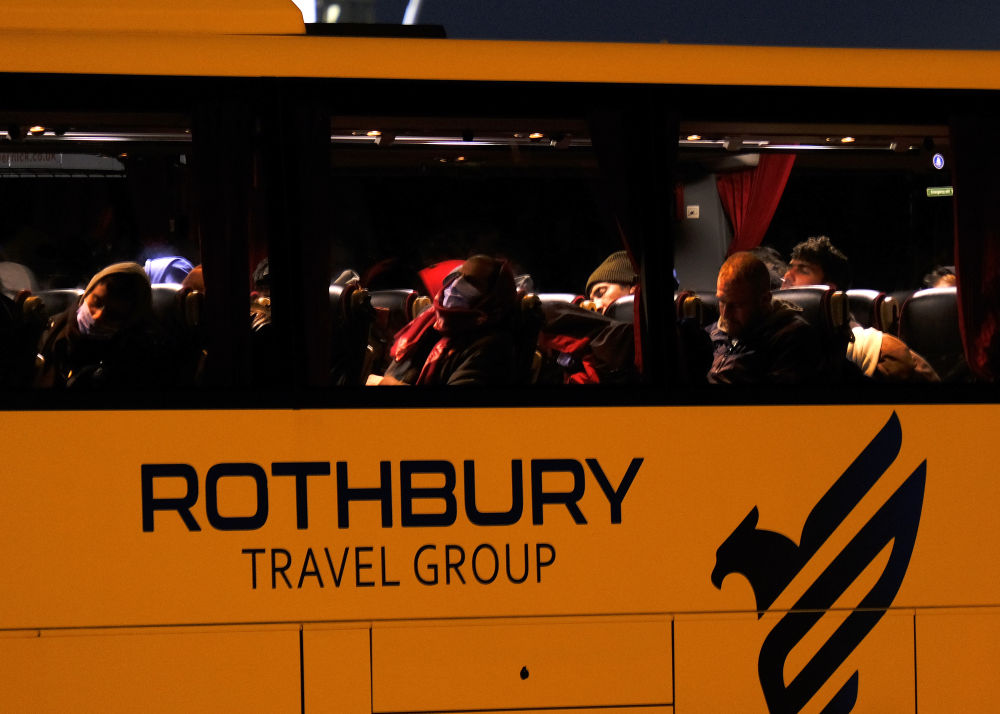 2021年11月24日,移民在抵达英国多佛后坐在车中等待离开。新华社发(史蒂夫·芬恩摄)
