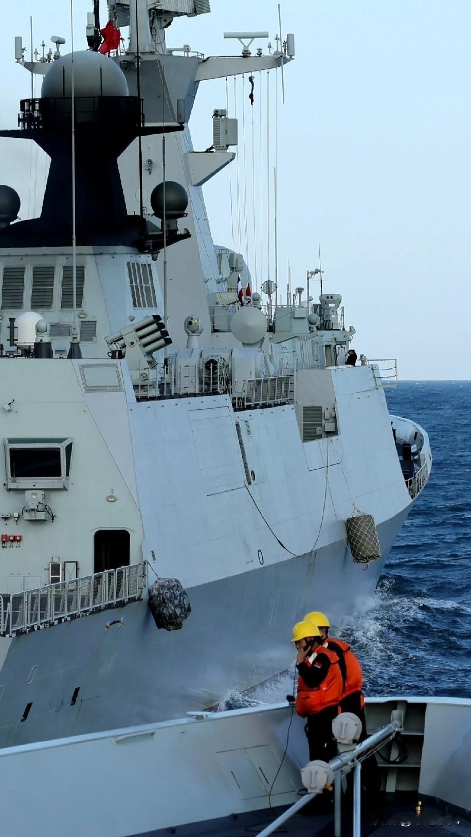 这到底在干啥?054A模拟演练“美式”拦截了…… 军号发的这个054A演练高清图,这是在模拟演练,拦截敌方军舰吗? 画面中,两艘军舰,从拍摄视角上看,就快装上了,两艘军舰上,也都各种派人分别在前甲板和后甲板上观察瞭望,前面的054A,很明显已经做好了碰撞的准备,放下了防撞缓冲垫儿,减轻可能碰撞造成的损伤! 公开的照片中,是两艘054A,在演练这个科目,说明,一切都在以实战出发进行演练,这演练的场景,应该是,拦截敌方军舰,迫使它转向远离,如果不远离,那就硬碰硬,对撞,就是不能退让,这就是态度和必须坚持的底线! 也有可能是针对菲猴儿,进行的针对性演练,黄岩岛附近海域,我们的舰艇,很容易被菲猴儿碰瓷儿,所以,针对性的演练,很有必要! 后面的054A,人员手里还拿着对话机,应该是实时报告相应情况,并且给出机动建议,并且,用的是有线电话,通话质量更好更稳定! 大家觉得呢?评论区说说你的看法中国护卫舰