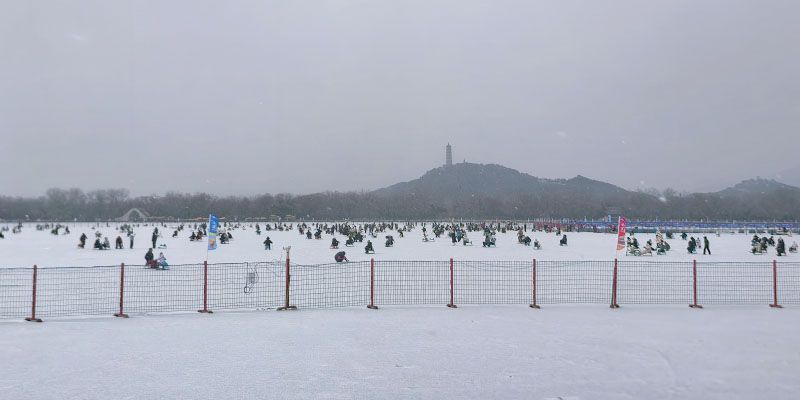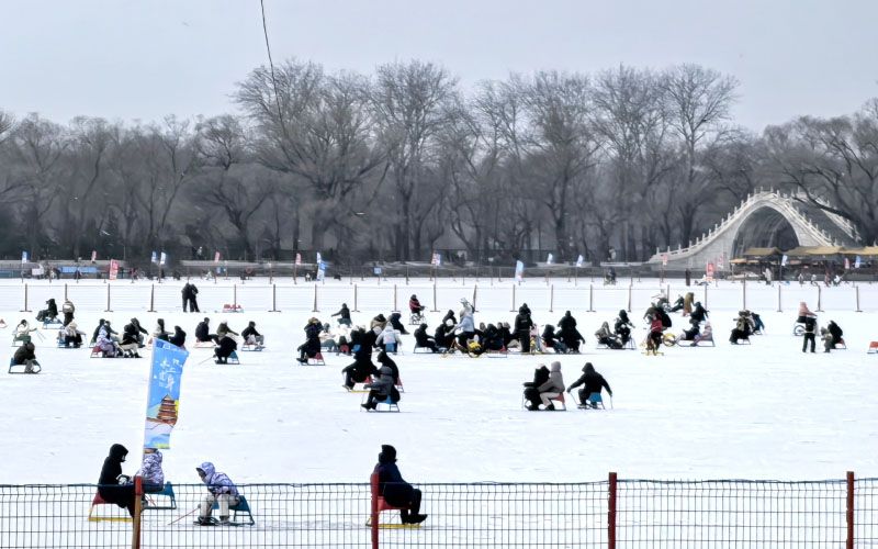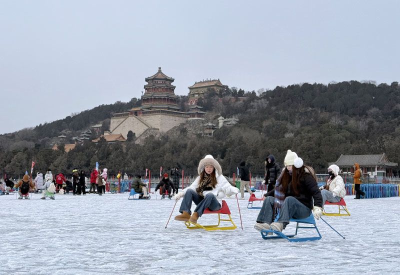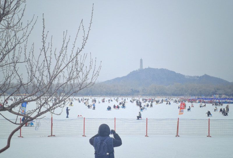 1月17日,颐和园昆明湖冰场正式开放,辽阔的天然冰面与万寿山、佛香阁等古典建筑遥相呼应,形成独具韵味的皇家园林冰雪画卷。