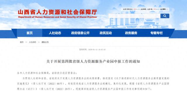 近日,山西省人力资源和社会保障厅官网发布《关于开展第四批省级人力资源服务产业园申报工作的通知》。