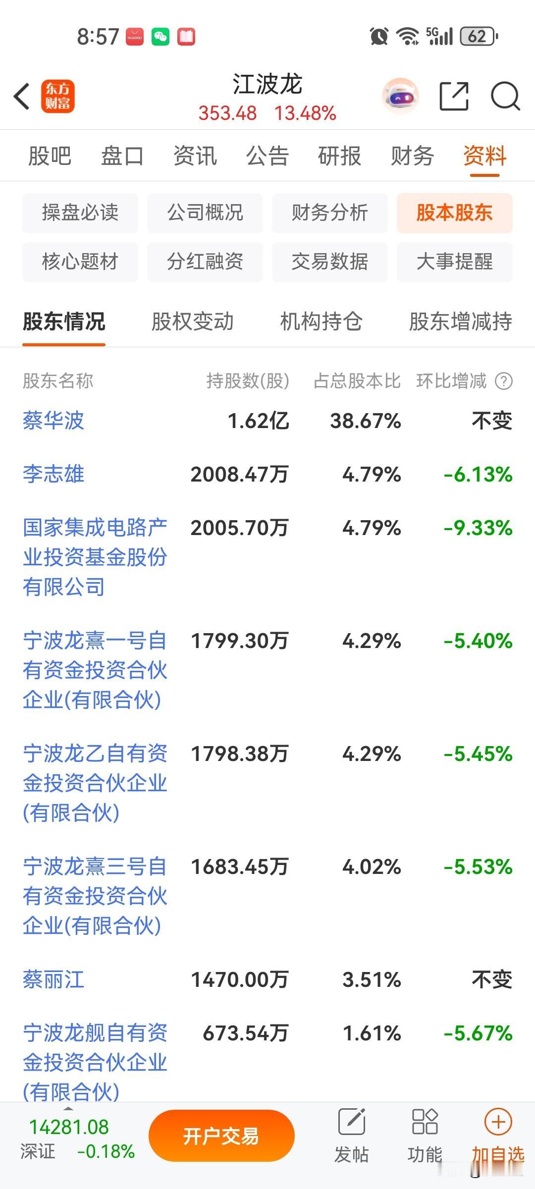 江波龙大股东减持非常厉害,五大股东锁定价格转让,他不是长江和长鑫,只是一次性收益,保证不了在高位延续盈利能力,风险是非常大的,和疫情的英科医疗一样,涨八十倍迅速跌回原地,美光科技三万亿市值,长鑫上市估值顶多四千亿左右,当然美光投资千亿美元扩产,量产还需要时间,通富微电40亿扩产但封装毛利太低,龙虎榜交易机构博弈激烈,卖出资金非常多,储存价格2026年肯定还会涨,但大多数股价风险很大,可以封底买,只有三家国外的hbm企业能掌控盈利能力,有回调还是能买不能追涨,国内hbm基本都是空白,比较好的公司都涨了比较高了,比如雅克科技,设备龙头北方华创,最近炒洁净室炒作的比较厉害,这种只要大涨就得卖很快掉下来跑都跑不掉!商业航空现在肯定没人敢碰,就算每年发万颗卫星只有700亿市场,不要去碰这种市场小又没有盈利能力的公司,还不如买机器人概念,人工智能应用可以埋伏,只要炒到应用就抛售,应用目前大多靠想象赚不到钱,互联网总共没出十家公司都在境外上市