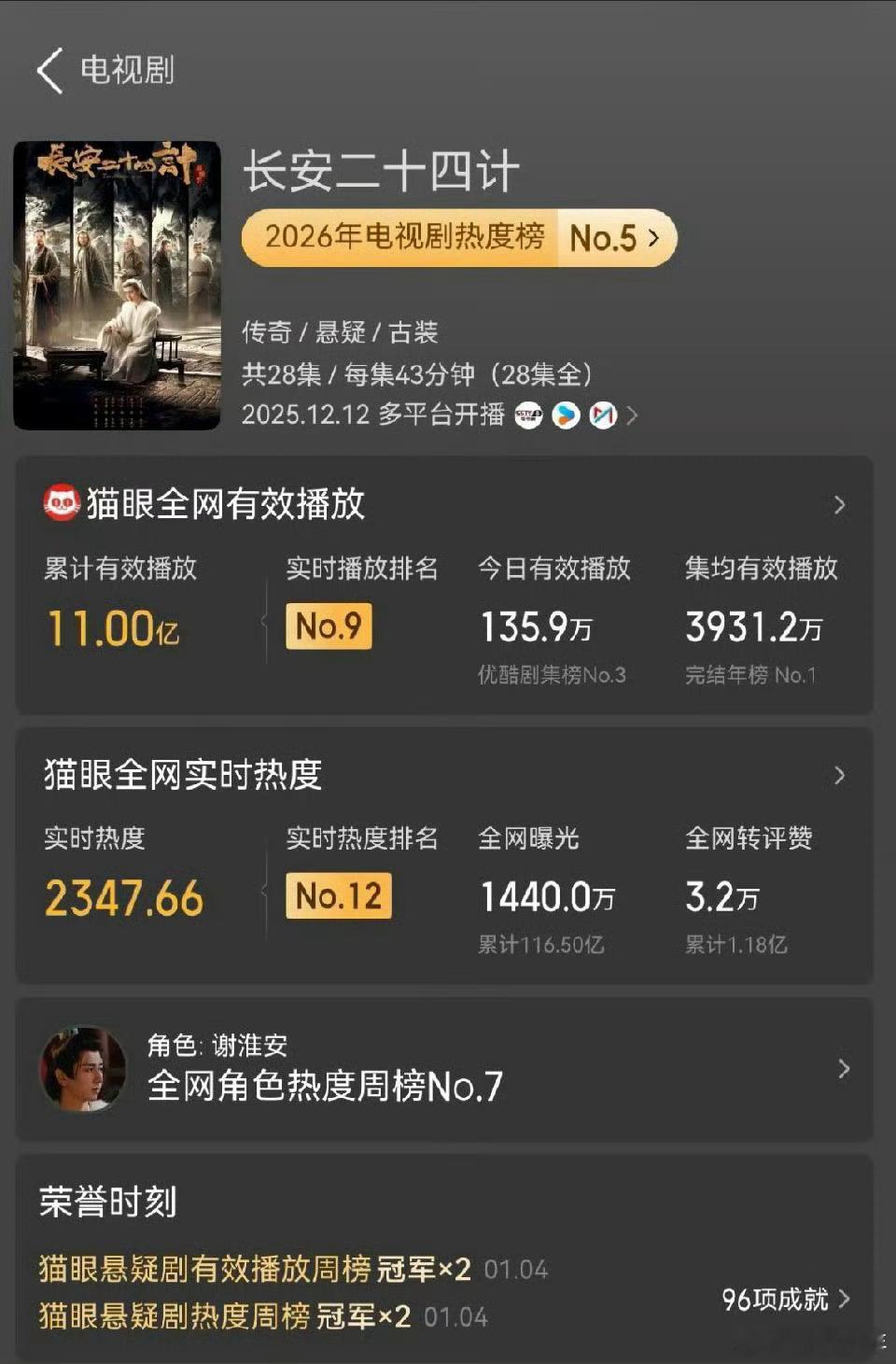 成毅长安二十四计11亿播放量成毅长安二十四计播放量破十一亿 谁还没被11亿播放量的《长安二十四计》圈粉!成毅彻底跳出舒适圈,把腹黑谋士的紧绷感与破碎感拿捏得恰到好处,剧情高能反转+演技封神,难怪后劲这么足~
