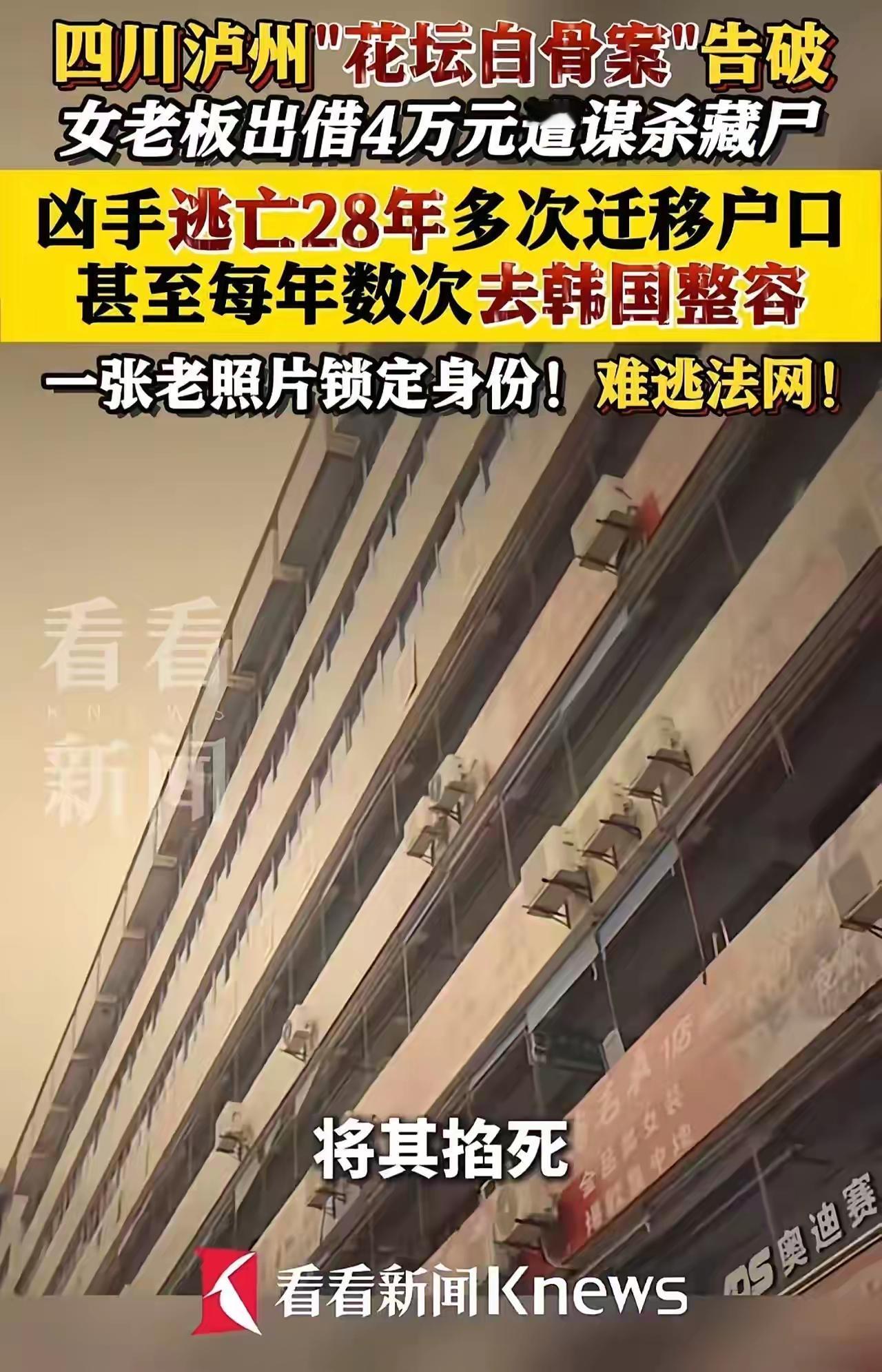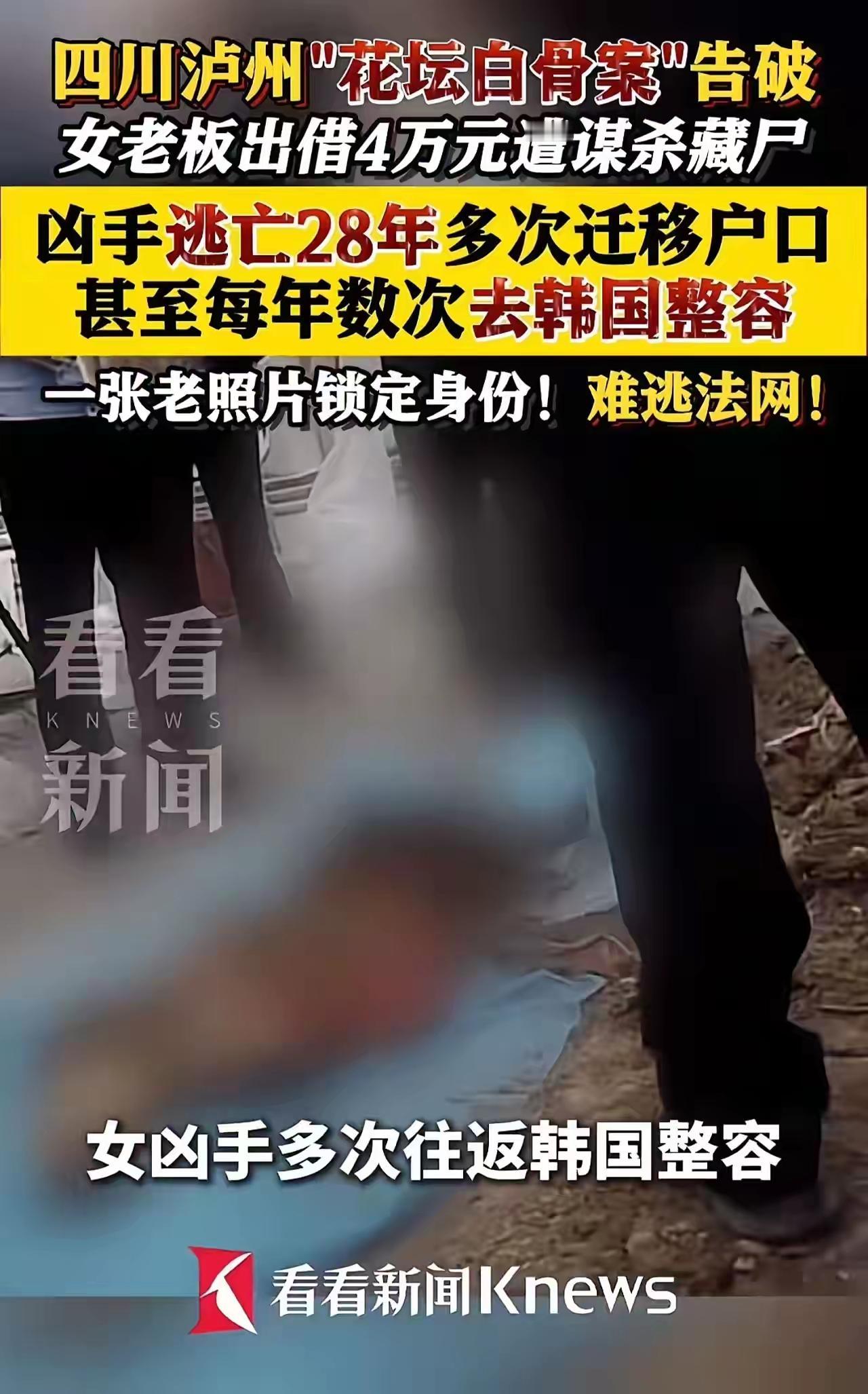 现实版农夫与蛇!四川泸州icon花坛白骨案告破,服装店女老板借给同行4万元,惨遭谋杀藏尸,多年后尸骨惊现花坛,嫌疑人“变身换脸”逃亡28年被抓! 这具尸骨,仿佛在向世人诉说着一段尘封的血泪往事。令人毛骨悚然的是,从骨骼的残迹中,似乎还能隐约辨认出一些曾经的痕迹——那是一场关于信任、背叛与人性深渊的悲剧。 事情要追溯到多年前。那时的泸州,商业繁荣,街头巷尾充满了喧嚣与繁忙。而在这繁华背后,却隐藏着一段鲜为人知的阴暗角落。白骨案的女主角,是一位普通的服装店老板娘,她性格坚韧、善良,却也有着普通人难以想象的脆弱。她曾借出4万元给同行,没想到这竟成为她生命的终点。 那天,她像往常一样忙碌,却再也没有回来。几天后,同行的店主突然失踪,连带着那笔借款也成了迷雾。警方调查一波三折,线索逐渐指向一个令人震惊的人物——曾经的“变脸”者,竟然逃亡了整整28年。 这位嫌疑人,曾是行业内的风云人物,但在一次意外的“换脸手术”后,彻底变了模样。他仿佛变成了一个新的生命,隐藏在社会的角落里,伪装成普通人。28年的逃亡,究竟隐藏了什么样的秘密?他为什么要逃避?又为何要用如此极端的手段掩盖真相? 这起案件的背后,折射出人性中的贪婪与恐惧,也展现了一个社会对“信任”的盲目和脆弱。那一份借款,原本只是商业中的一笔交易,却因一场意外变成了生死之劫。人们常说,“善恶有报”,但真正让人心碎的是,善良的人,可能因为一时的信任,就付出了生命的代价。 如今的泸州,花坛中的白骨成为了一个沉重的警示:人心复杂,黑暗难测。我们每个人都在社会的舞台上扮演着不同的角色,可能是善意的守望者,也可能是被贪婪吞噬的牺牲品。这起案件提醒我们,信任需要谨慎,善意需要智慧。 故事还在继续,真相或许还未完全揭开。而这具白骨,也成为了一个时代的缩影,提醒我们在繁华的背后,要时刻警惕那些隐藏的危险。面对人性的善与恶,我们都在选择中前行,但记住:不要轻易信任表面光鲜的人,也不要被一时的利益冲昏头脑。 这,就是现实版的“农夫与蛇”。善良,也许是我们最宝贵的财富,但在这个复杂的世界里,懂得保护自己,才是真正的智慧。你,是否也曾在生活中遇到过类似的信任危机?又该如何在善良与警惕之间找到那份平衡?欢迎留言,让我们一起讨论这个永恒的话题。河南尸骨 尸骨案