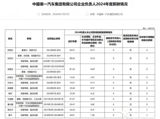 1月14日,官方披露了2024年度中央企业负责人的薪酬,引发人们密切关注。运营商财经网注意到,一汽集团董事长邱现东获薪90.97万元,竟不及国内大多民营车企高管的薪酬水平。