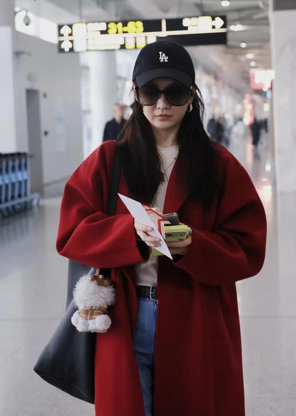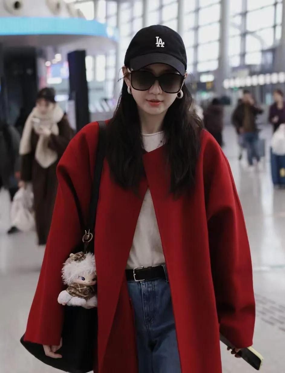 王鸥这波机场私服,把“新年氛围感”焊在了身上!✨ 一袭正红色大衣自带气场,内搭简