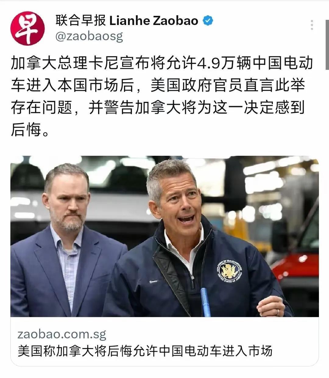 联合早报说,加拿大总理卡尼和中方会面后,搞出个“电动车换油菜籽”互降关税的贸易协议。并且发表了两国建立友好关系的共同声明,在政治,经贸,金融,能源等多个领域达成共识。这对双方来说,都有好处。是一个双赢的好事。对咱中国而言,电动车出口到加拿大或许能更顺畅,扩大海外市场,让咱的新能源产业在国际上更有话语权。而加拿大的油菜籽进入中国市场成本降低,说不定能丰富咱们的食用油选择。不过,这协议后续怎么落实,能不能真的让双方都大赚一笔,还得接着瞧。希望这是个双赢的好开端。 另据1月17日,联合早报报道,美国方面坐不住了,美国官员警告并威胁加拿大总理卡尼,让中国4万9000台电动车进入加拿大市场,取消对中国电动车加征的100%惩罚性关税。转而恢复最惠国待遇,加方最终会感到后侮。美国有些人疑似出现“酸葡萄”心理。长期以来,特朗普为了遏制和打压中国崛起,阻止中国电动车进入美国市场。美国的单边贸易遭到了中方强力反制!至于加方与中方签订什么贸易协议,该美国什么事!真是长臂管辖,管的太宽了! 加拿大省际分歧 加拿大贸易关系 加拿大协议 加拿大石油出口 美加关税争议 加拿大经贸合作 美国收购加拿大