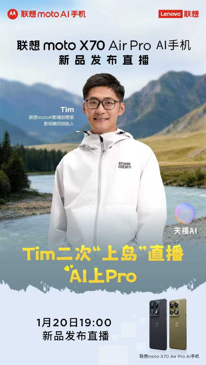 联想moto X70 Air Pro“轻薄全能”AI手机即将发布