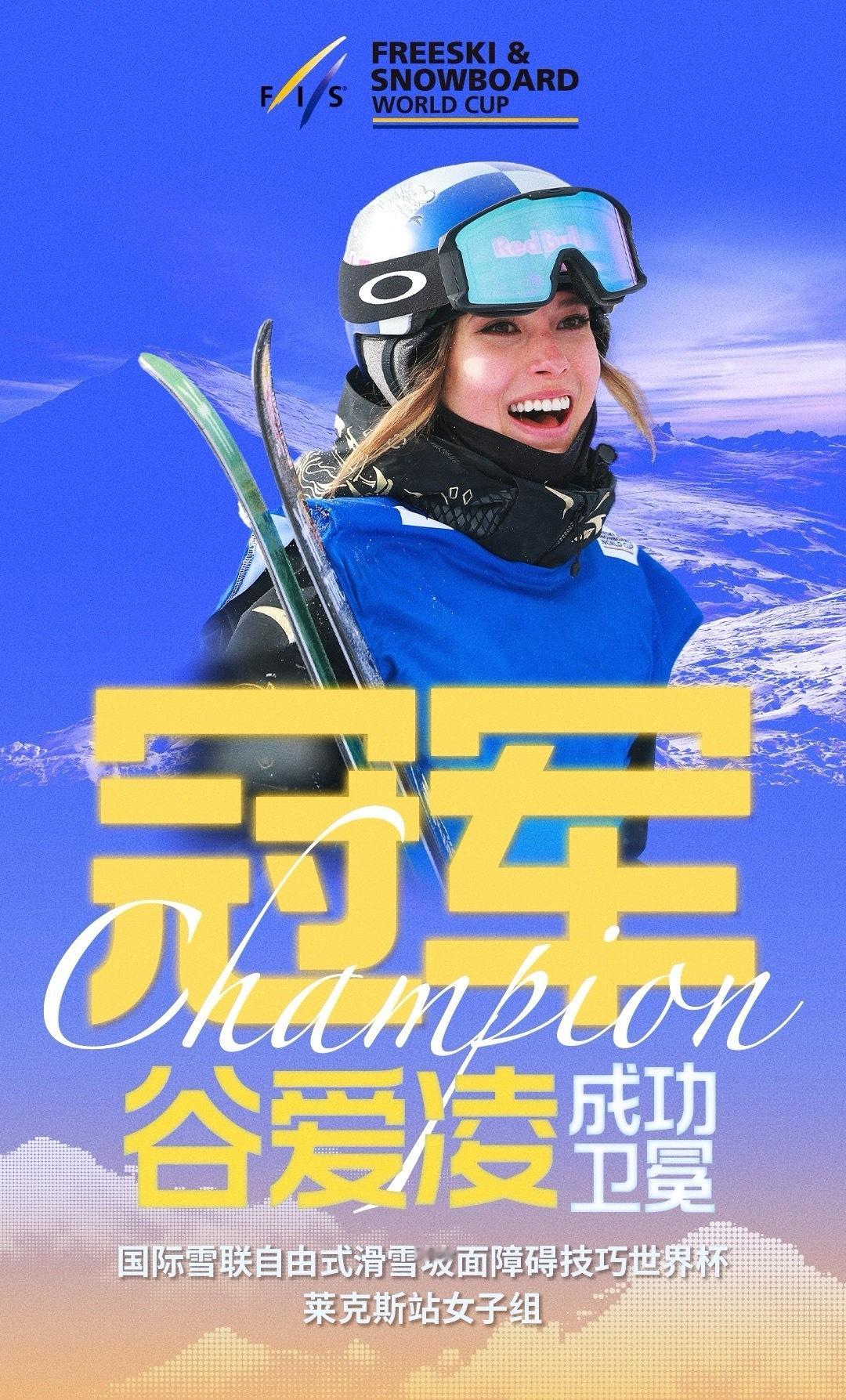 谷爱凌坡面障碍世界杯夺冠 自由式滑雪坡面障碍世界杯莱克斯站决赛中,🇨🇳谷爱凌以首轮85.13分的成绩夺得冠军,超越第二名近14分,成功卫冕本站冠军。这是谷爱凌职业生涯第20个世界杯冠军,超越所有单双板滑雪选手,成为国际雪联世界杯历史第一人。