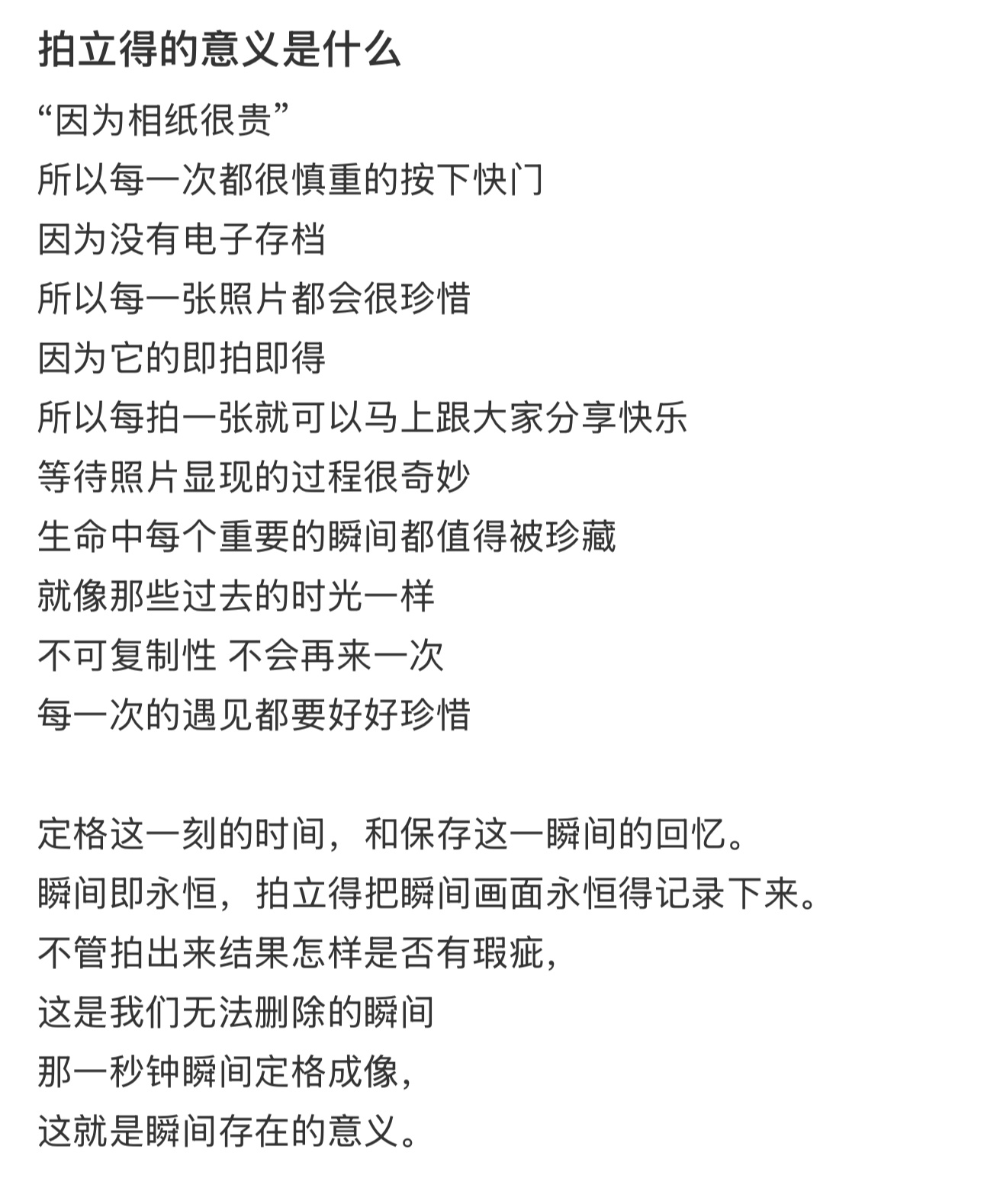 丁禹兮你咋这么好 报纸机坏了,但是准备了更贵的拍立得相纸、装饰的贴纸、彩笔 其实选择照片打印机会更具性价比,但是他选择了拍立得,真的很浪漫如同亲手帮我们从时间的蛋糕上切下永不变质的一片,记录下了生命中独一无二的时刻拍立得:“拍下、立刻、得到”📸如同手写信一般的拍立得是这个时代的奢侈品他真的很爱很爱我们