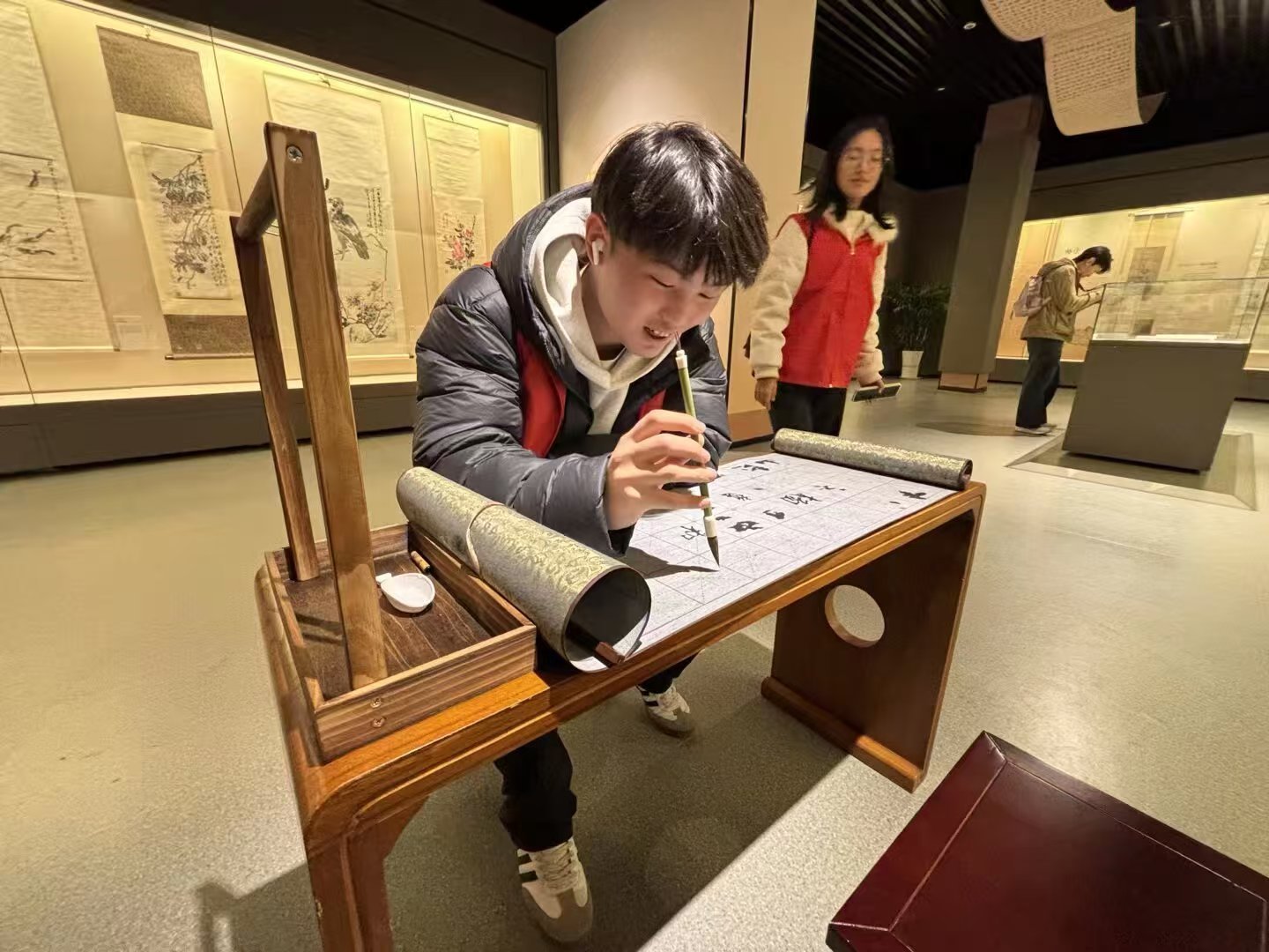 秦岭笑谈大学生寒假社会实践科技传承书法文化【走进济南市博物馆 在AR光影中触摸千年翰墨】1月18日,曲阜师范大学传媒学院“吕韵传薪,文脉永续”实践队来到济南市博物馆,亲身体验了馆内新设的书法AR互动屏,在科技赋能中感受传统文化的新生活力。在博物馆书画展厅,队员们聚集在AR互动屏前。屏幕上呈现的是历代书法名作的数字化版本,只需手指轻触,便能逐字放大王羲之《兰亭序》的笔锋转折,或跟随颜真卿《祭侄文稿》的墨迹起伏体会其中情感。更引人入胜的是临摹体验功能——队员们可选择字帖,在空中挥动手势,屏幕即实时生成笔墨轨迹,并给予运笔评分与修正提示。“原来‘永字八法’可以这样拆解学习,”一位队员在尝试后说道,“隔着屏幕,却好像真的摸到了那种提按顿挫的力道。”博物馆工作人员在一旁讲解:“我们希望通过技术,让书法不只是玻璃柜里的展品,而是可触、可试、可对话的活态艺术。”此次体验让队员们直观感受到,科技并非传统的对立面,而是能让文化“活起来”的桥梁。作为传媒学子,我们既感慨于书法艺术穿越时空的感染力,也认识到数字化传播在文化传承中的巨大潜力。大家表示,将在今后的创作中积极探索传统文化与现代视听语言的融合方式,让厚重历史在轻盈交互中走进更多人的视野与心灵。投稿人: