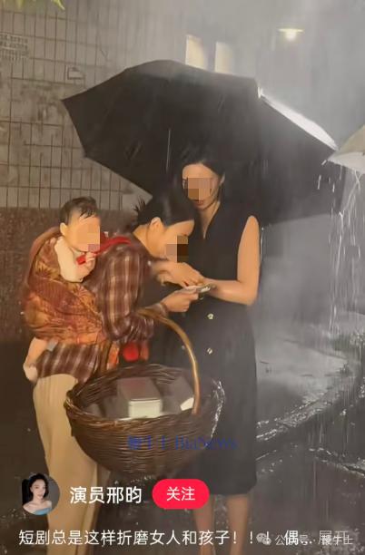 据短剧女演员邢昀发文称,在某短剧拍摄过程中,剧组于夜里使用洒水车制造强降雨环境,在拍摄过程中,与其对手戏的女演员背着一名婴幼童,孩子在雨中长时间被淋,持续哭闹。