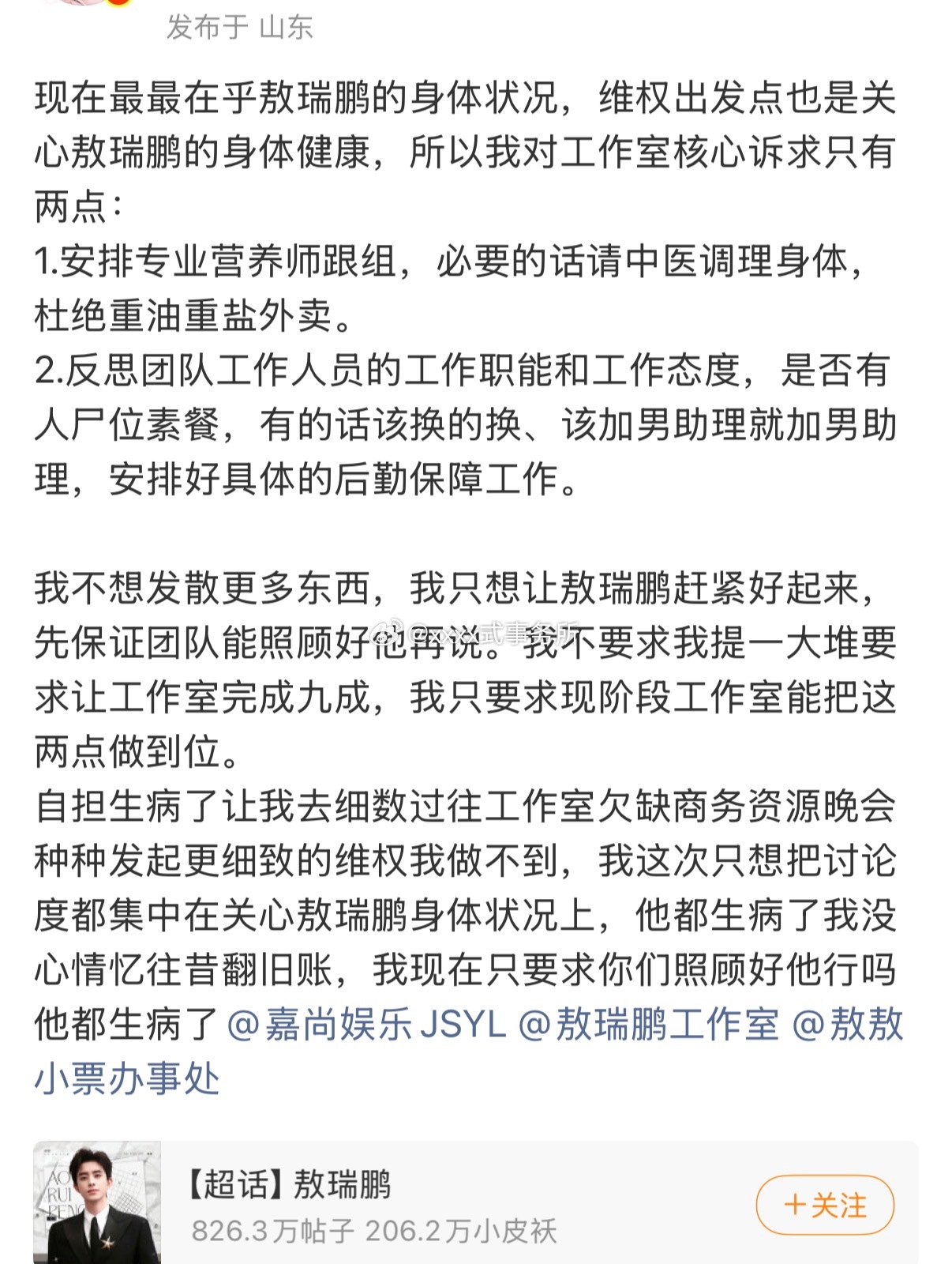 敖瑞鹏还没好完 已经回剧组上班了 不愿耽误剧组进度 团队真的要提升艺人健康管理能力了吧重视粉丝诉求敖瑞鹏肠胃炎