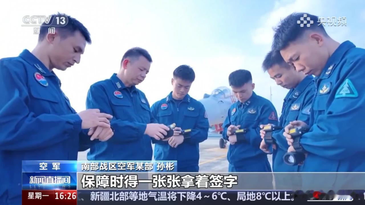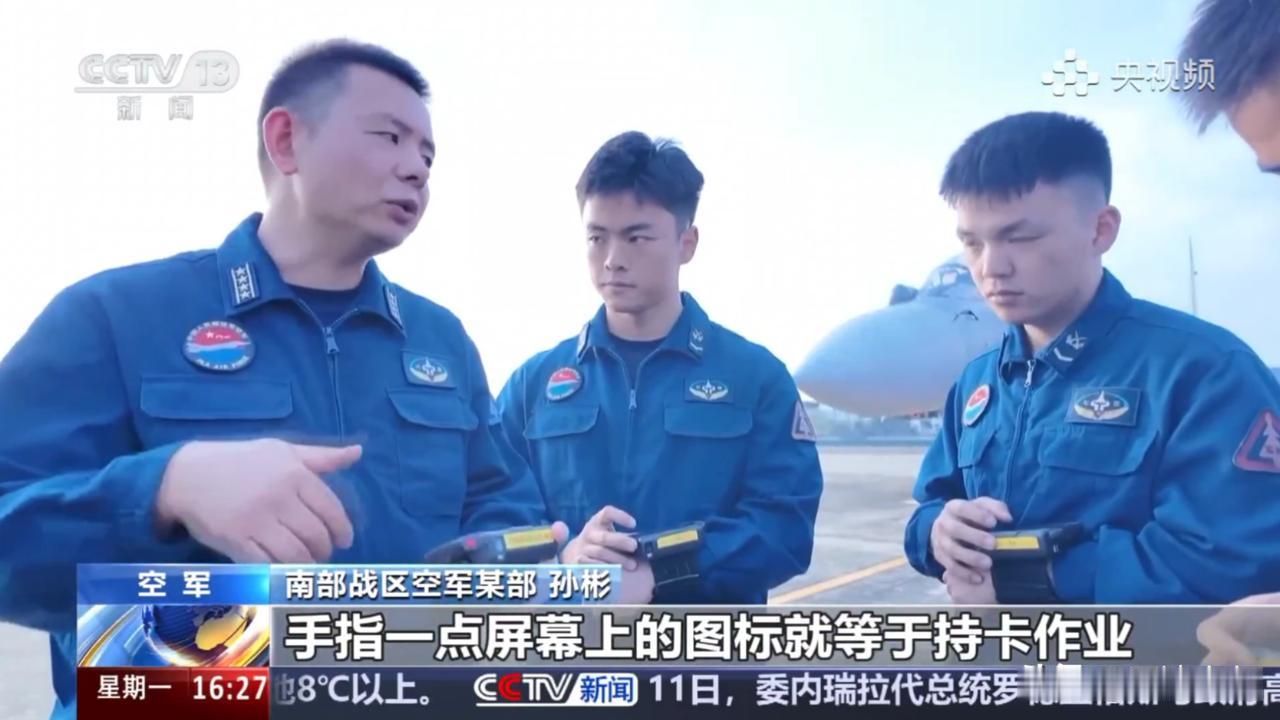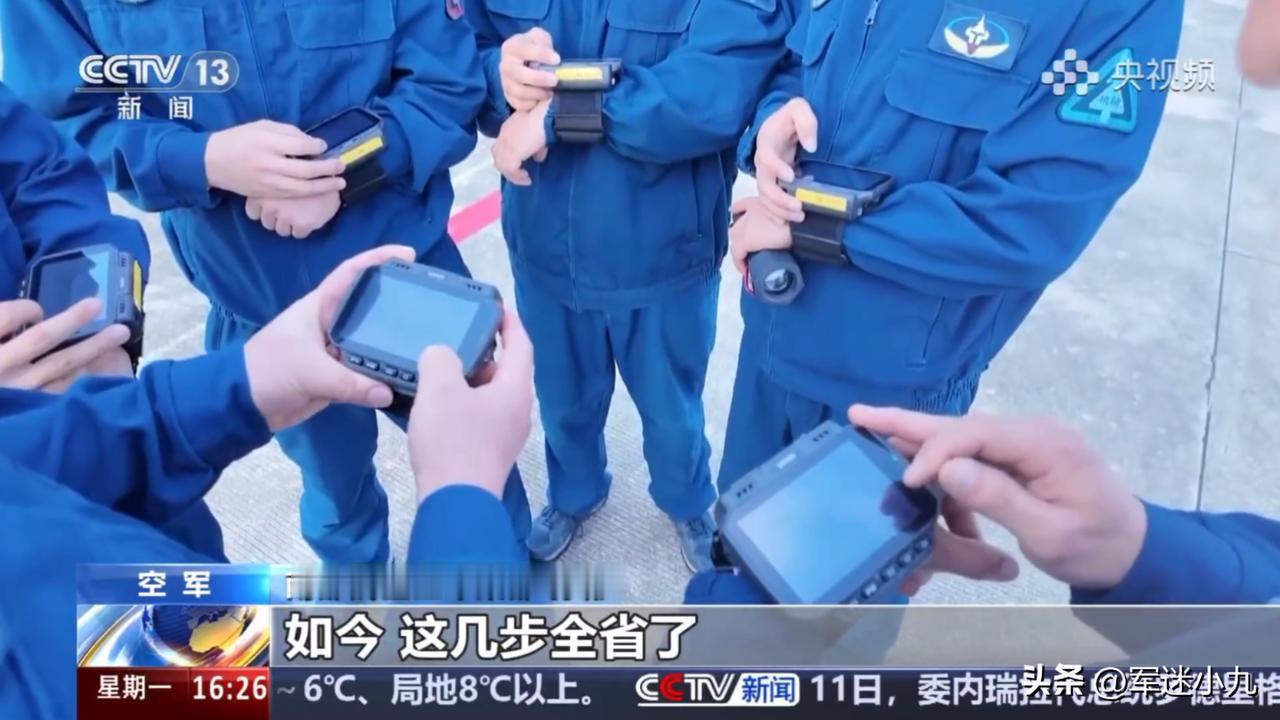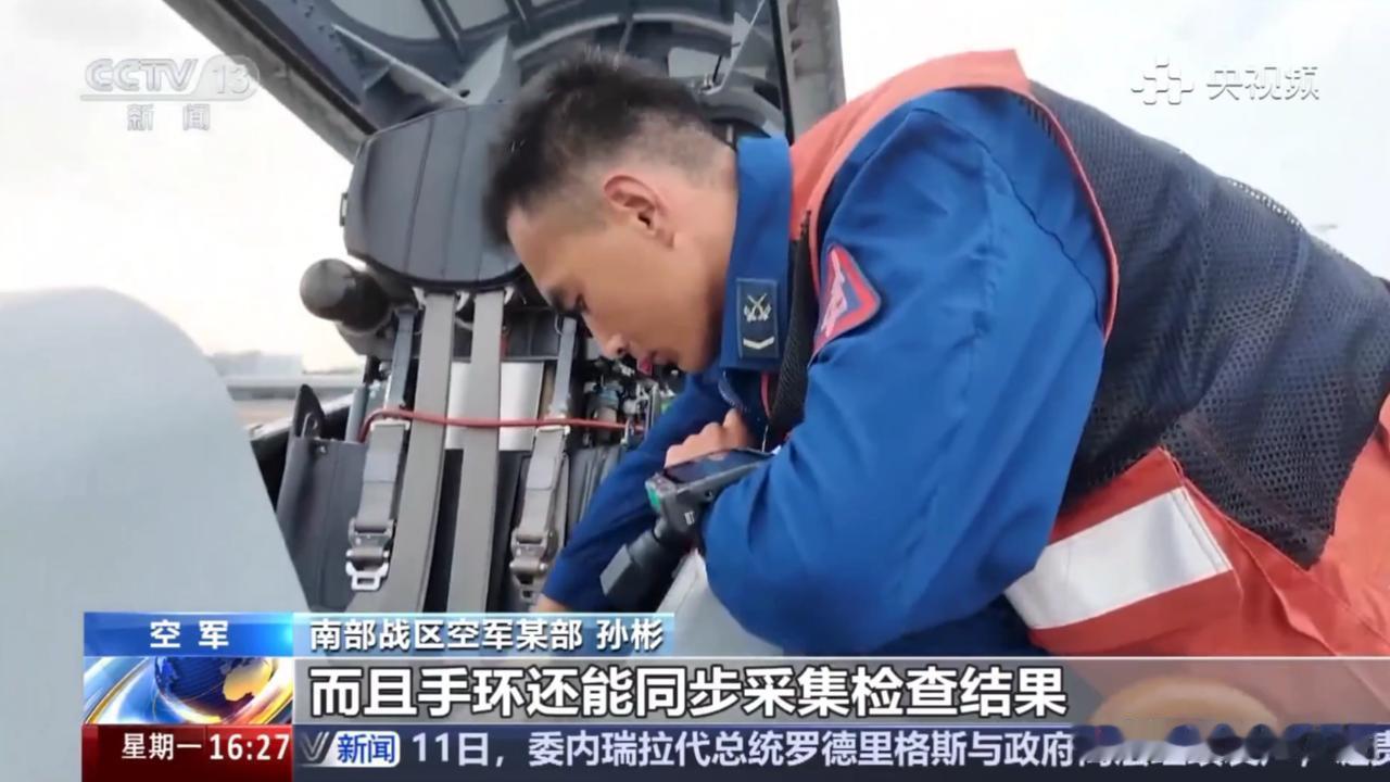 歼16一排排,战斗力满满,机务人员却用上了新科技? 官媒报道中,一次保障演练,正式开始!飞机突发险情,急需备降本场,应急预案随即启动,机务人员,快速抵达现场,对战机进行检查维护! 公开画面中,机务人员,居然用上了新科技,那就是,戴在手臂上的“任务手环”,就像是一个大号的智能手表,保障流程更简单,完成后,上传签字也更方便,不再需要小卡片了,而且,还是人手一个! 应该还有拍照功能,完成检查维护后,确认无误后,就可以拍照上传了,审批合格,这个工作就算是完成了,不仅,提高了工作效率,更节省了时间! 看起来也是酷酷的,一切都在走向智能化,越来越方便,越来越简单,这要是,新闻里不报道,这谁能知道,机务工作现在都这么卷了?! 大家觉得怎么样?评论区说说你的看法!