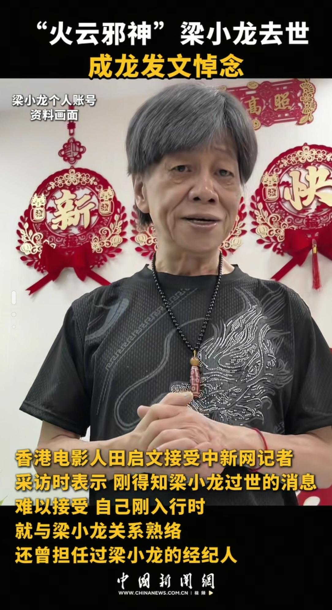 【成龙不愿相信梁小龙去世】四小龙已有两人去世发文悼念知名武打演员梁小龙,他表示一