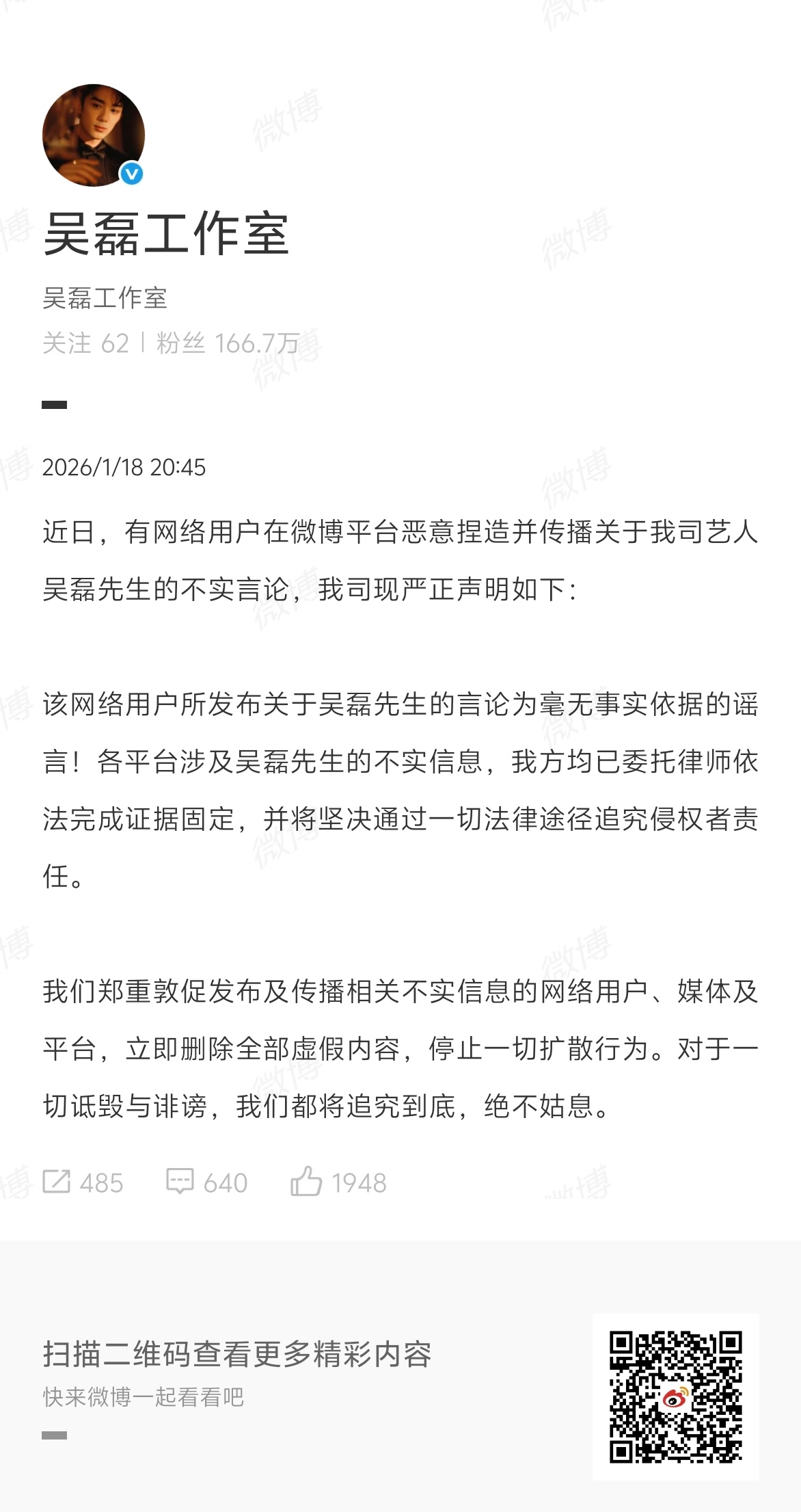 白珊珊 吴磊你欠我的拿什么还吴磊工作室回应了,说是谣言,已经取证,算对号入座了?