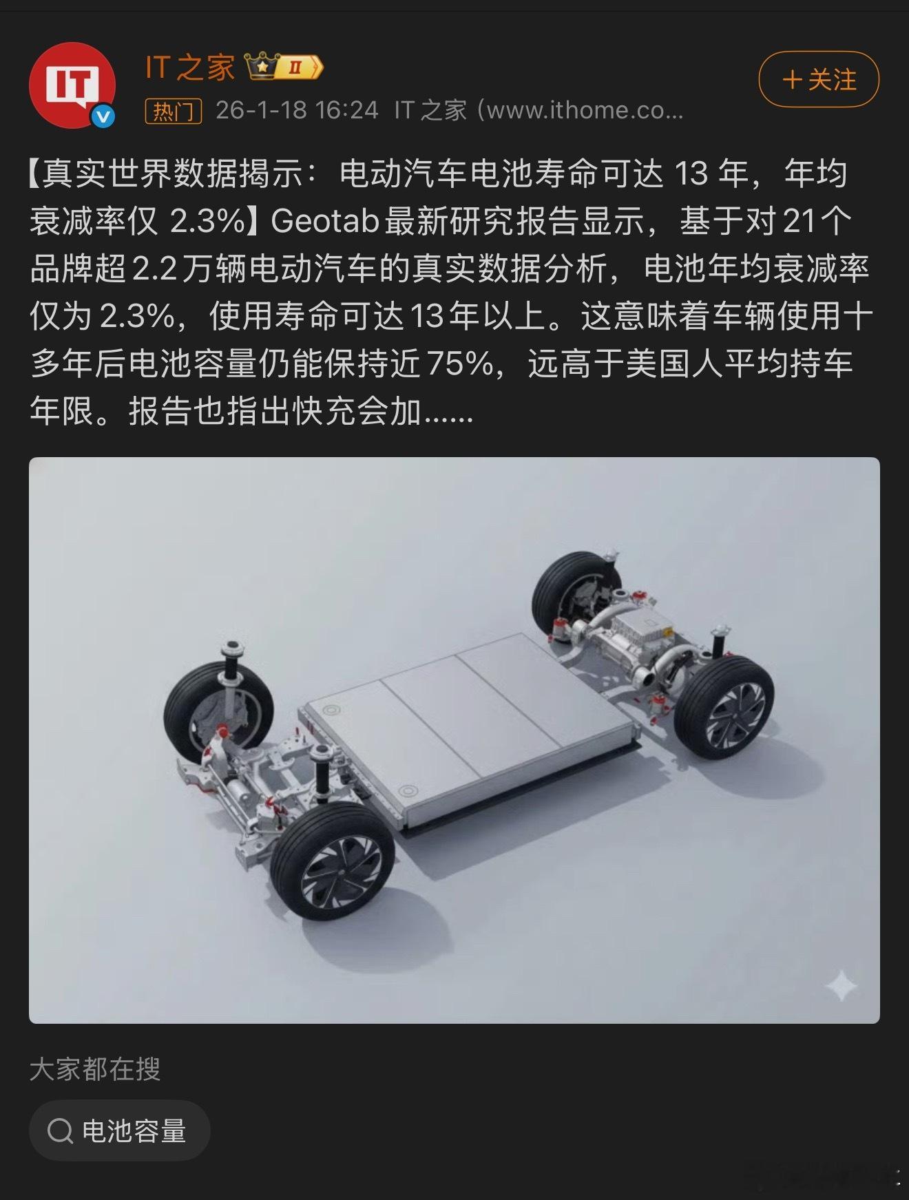电动汽车电池寿命可达13年远高于美国人平均持车寿命,但是对于中国人来讲,大多数中国人换车基本都在十年以上吧现在电池的平均寿命在6-10年,超过十年的电池衰减都比较严重了,但是全固态电池可以很好的解决这个问题,全固态电池的理论寿命可以达到几十年