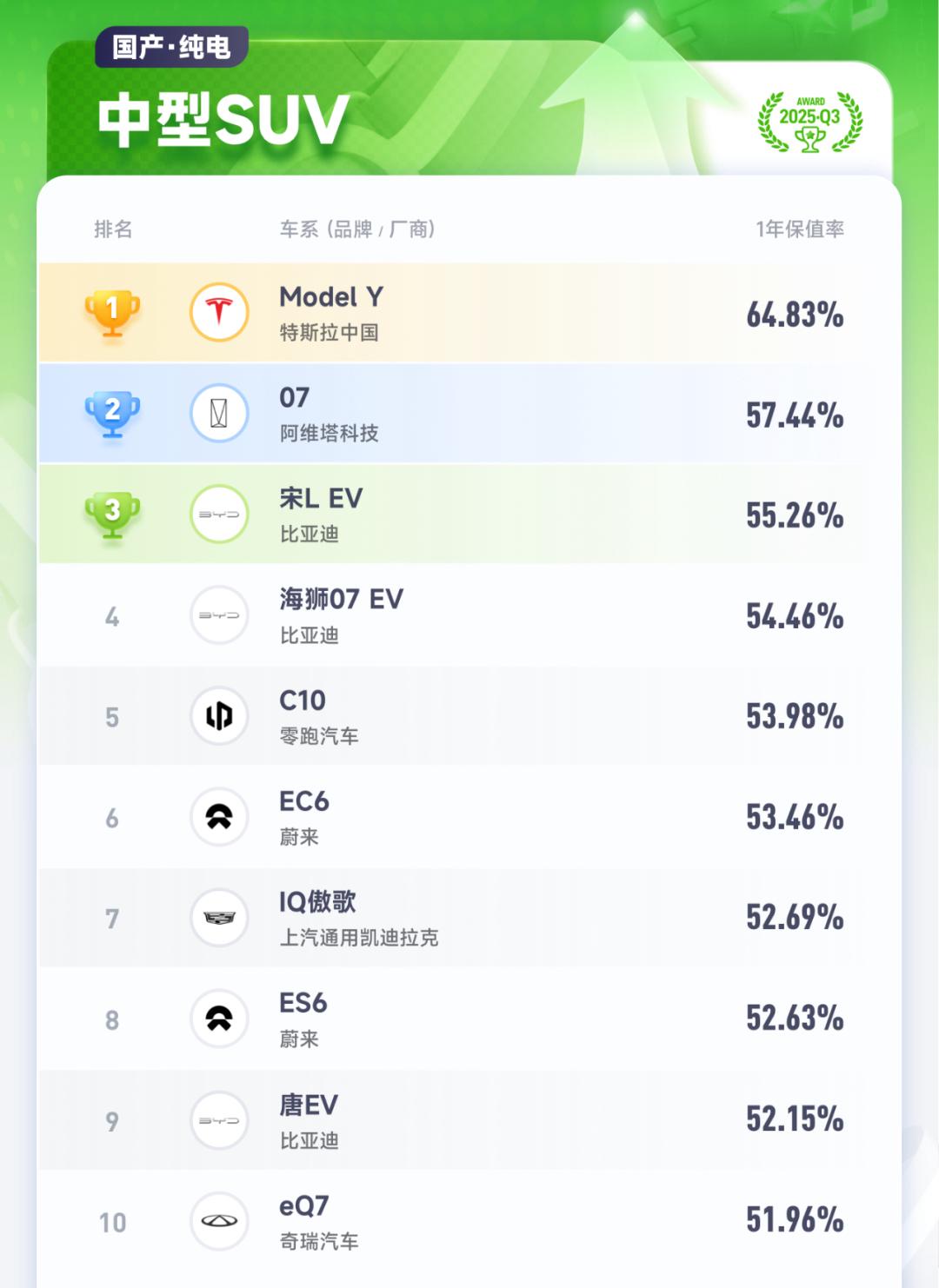总听人说“电车不保值”?最新权威报告狠狠打脸:在纯电动车三年保值率榜单上,前两名