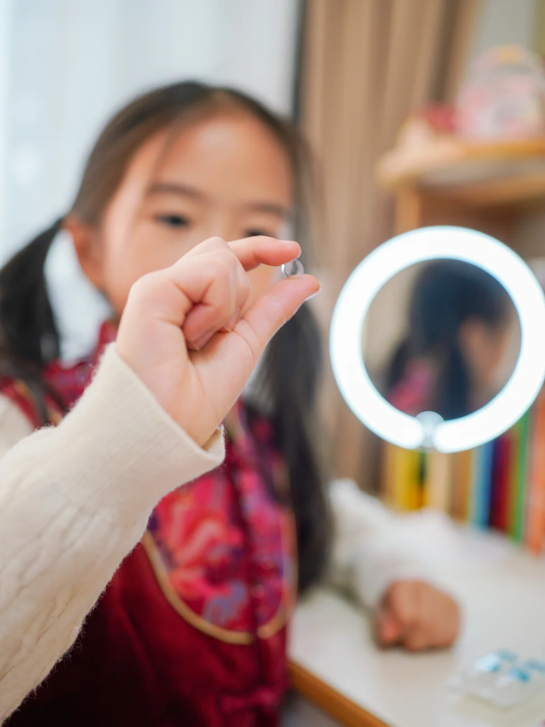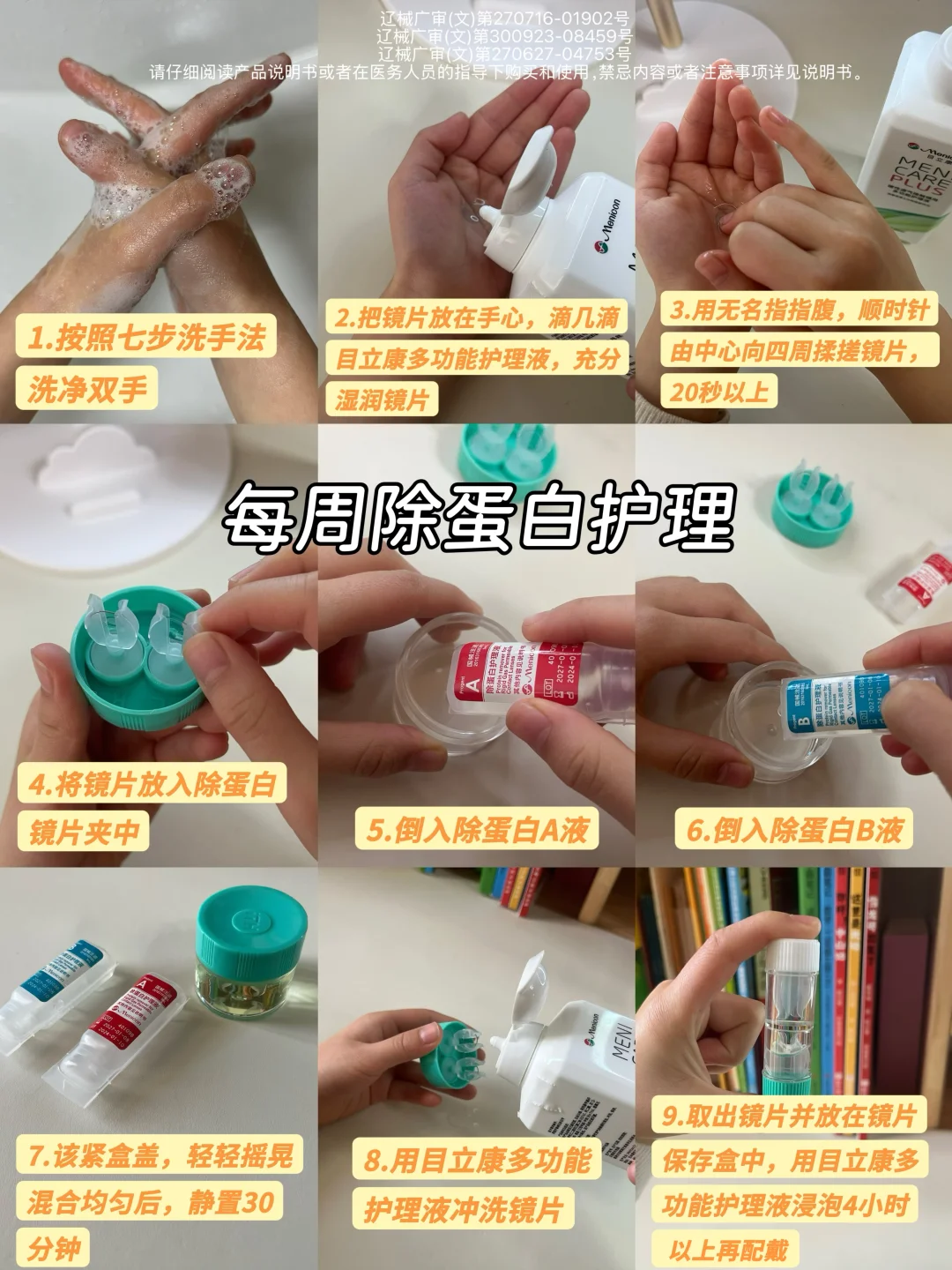 用法超简单,用护理液揉搓20秒,(划重点!揉搓非常重要哦!),冲干净就能直接配戴,它的成分很温和,不刺激眼睛,娃自己就能操作。