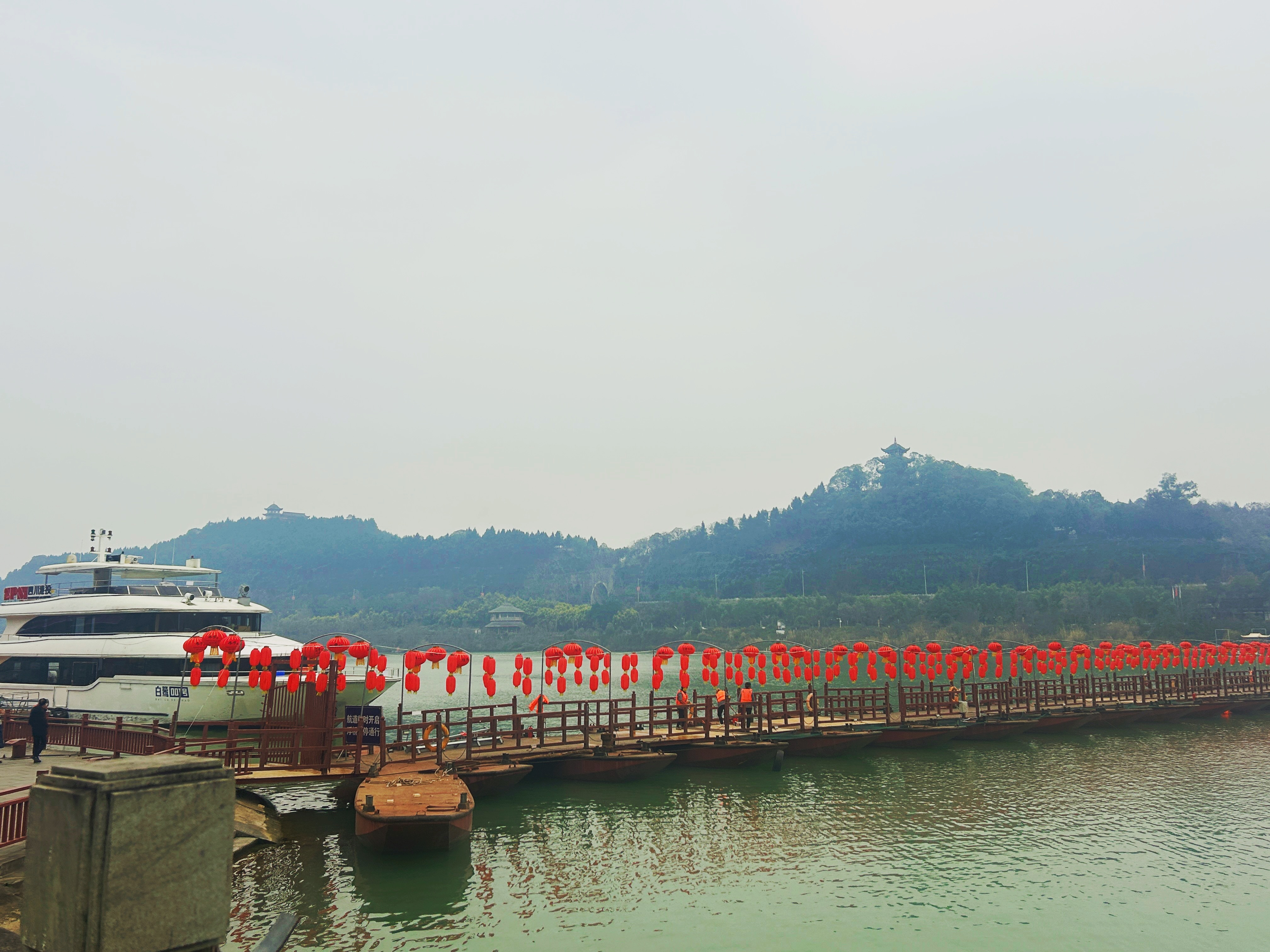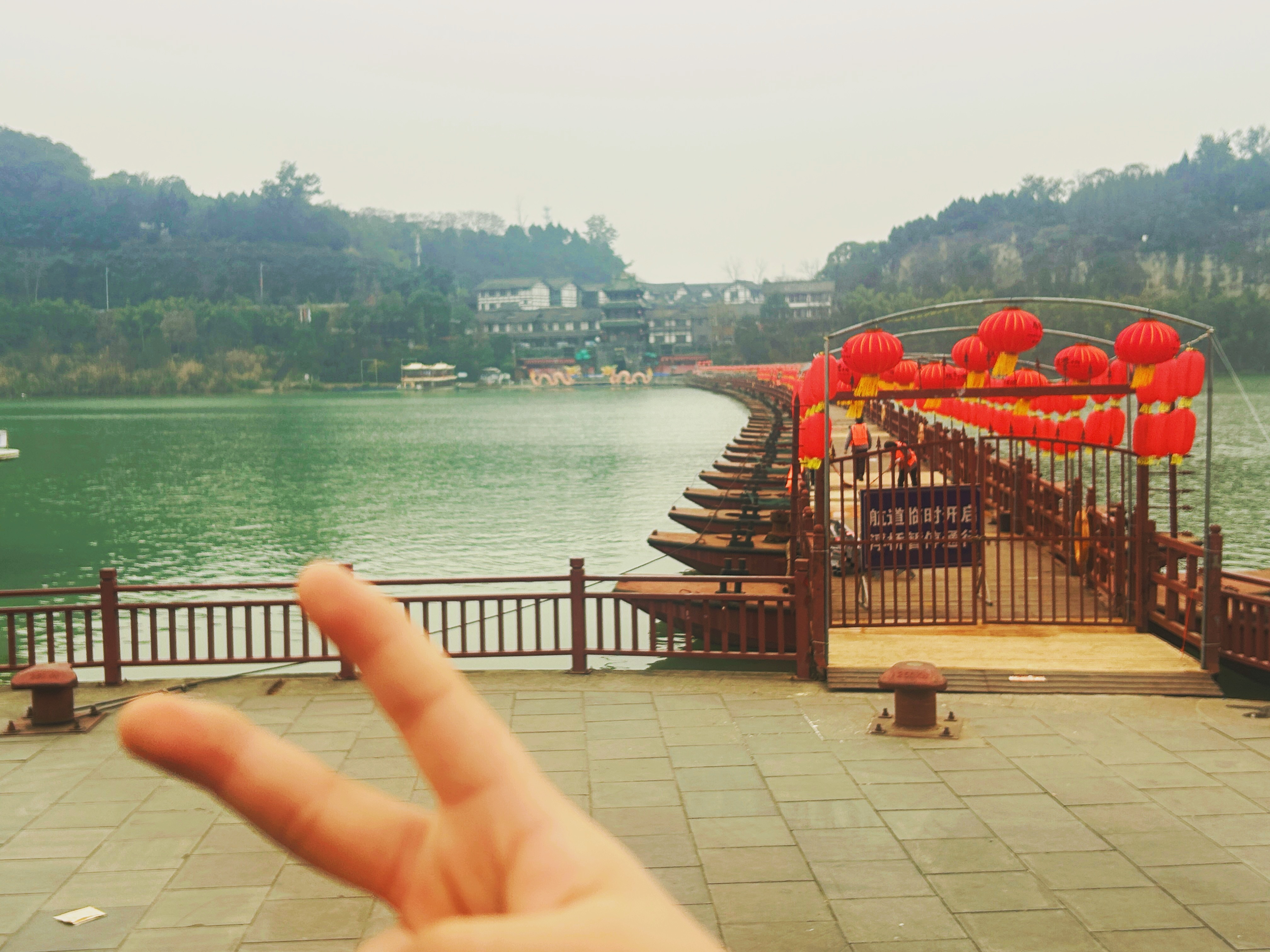 天气虽然不好还是可以在江边跑跑步 走走路 跑完步和豪弟又走了一大圈浮桥一搭就是要