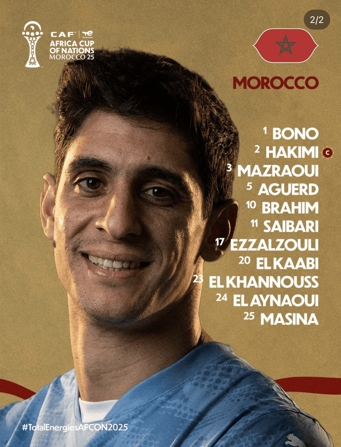 摩洛哥首发:1-布努、2-阿什拉夫、5-阿格尔德、25-马西纳、3-马兹拉维、23-哈努斯、24-艾纳维、11-萨伊瓦里、17-阿布德、20-卡埃比、10-卜拉欣-迪亚斯