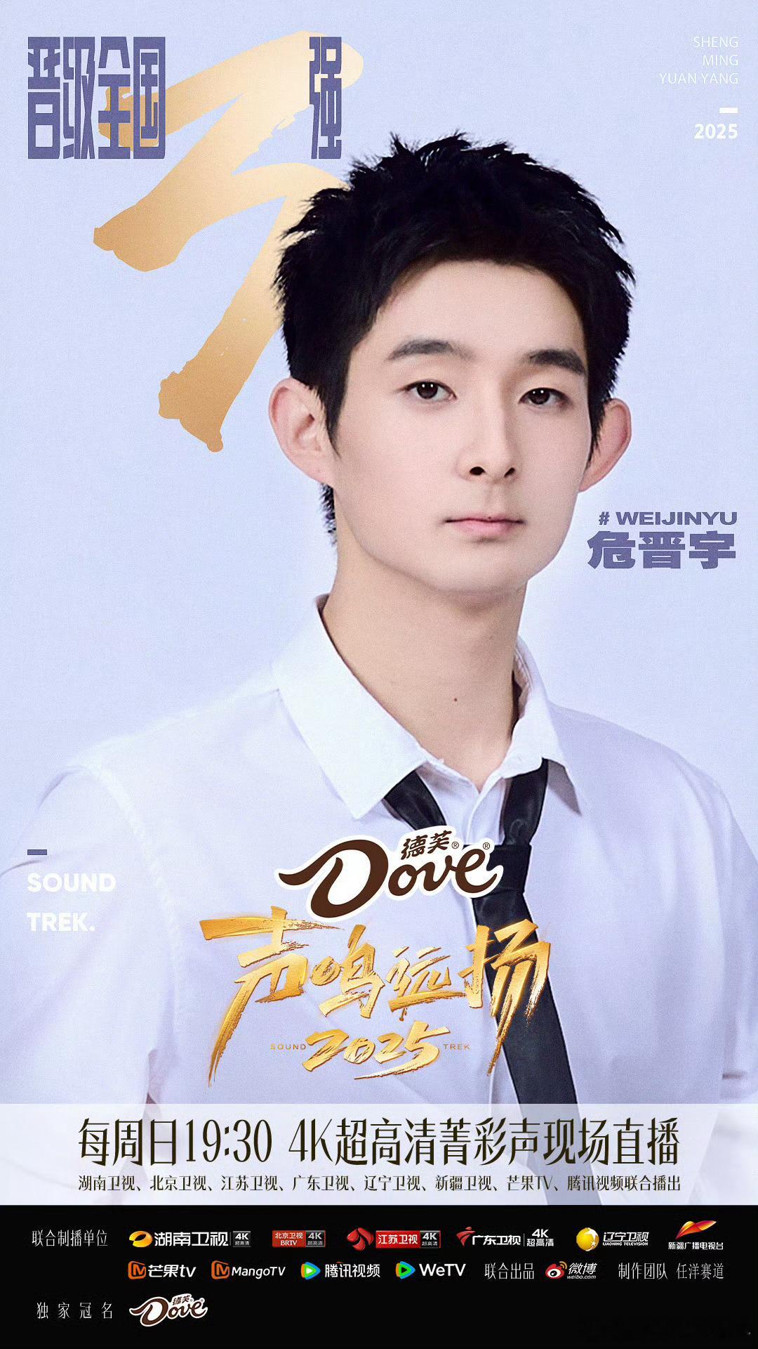 危晋宇声鸣远扬全国三强危晋宇晋级声鸣远扬全国三强,每次舞台都拼尽全力,危晋宇真的值得!未来可期啊!声鸣远扬