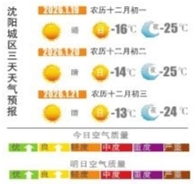 本报讯(沈阳晚报、沈阳发布客户端记者徐佳婷)目前已进入“四九”,来到一年中最冷的时期。1月18日,记者从沈阳市气象部门获悉,周一(19日)新一股冷空气到来,沈城“冻感”将变本加厉,预计周一到周三(21日)是未来一周里最冷的几天,虽然以晴为主,但最高气温只有-13℃到-16℃,最低气温将降至-24℃到-25℃,是今年以来的新低,“三九不寒四九寒”这句话在今年特别应景。