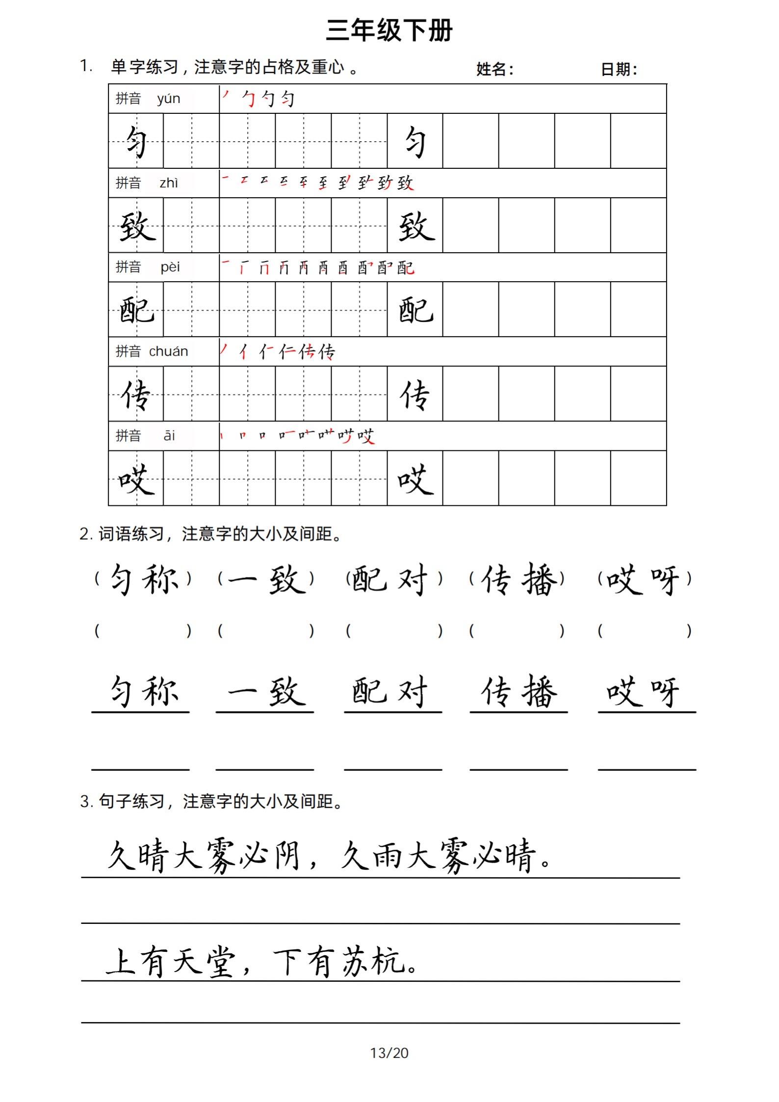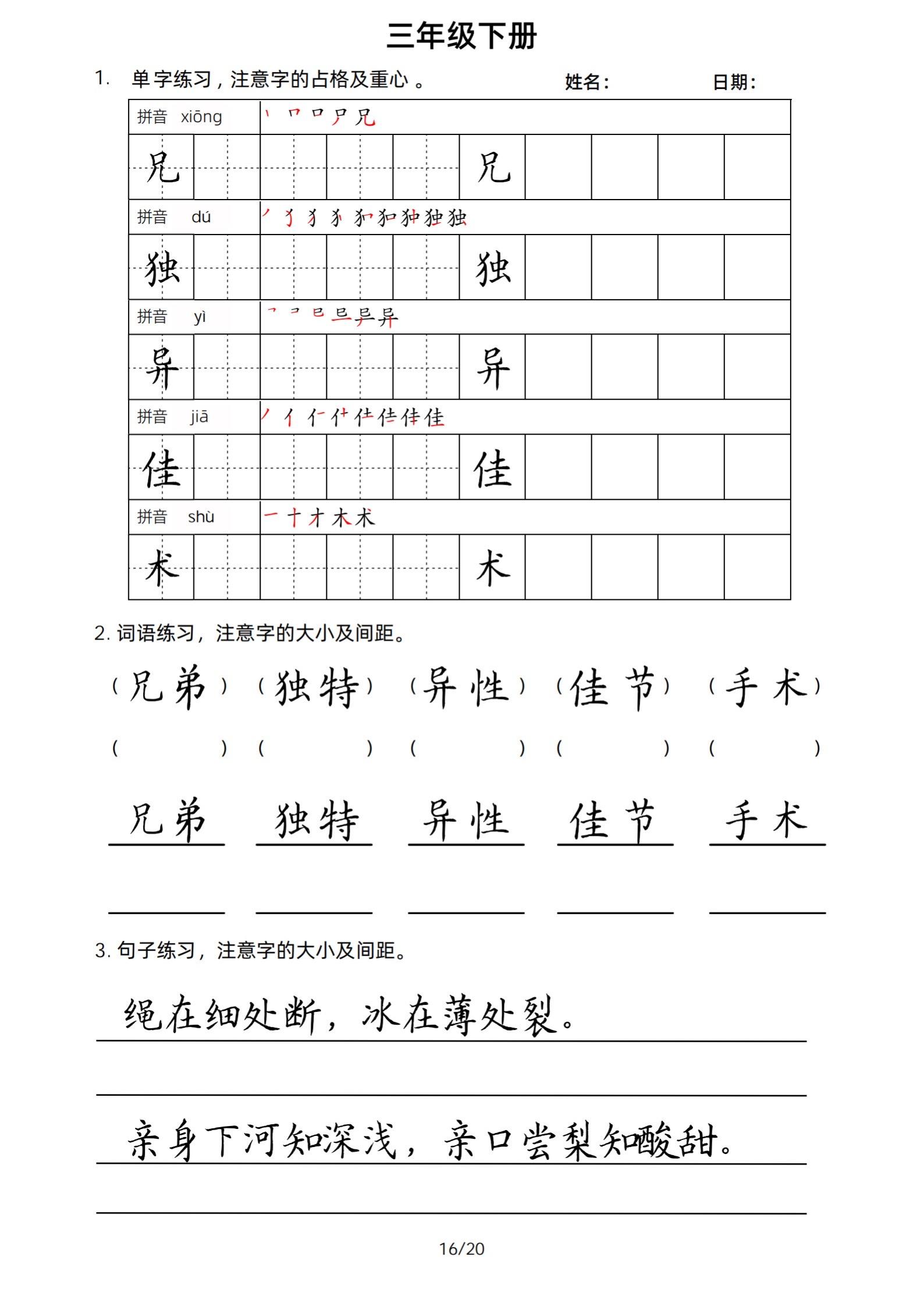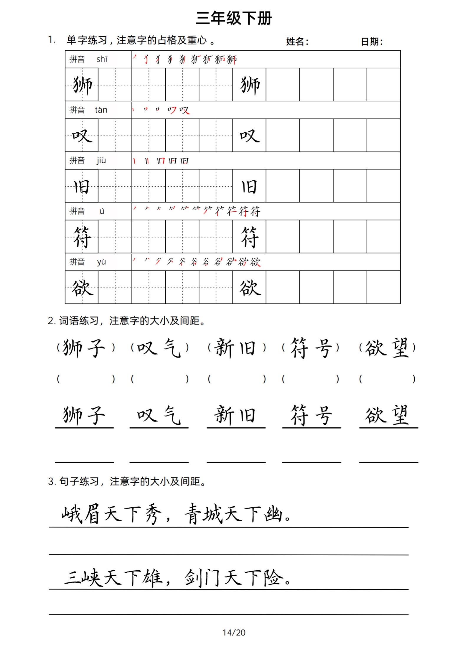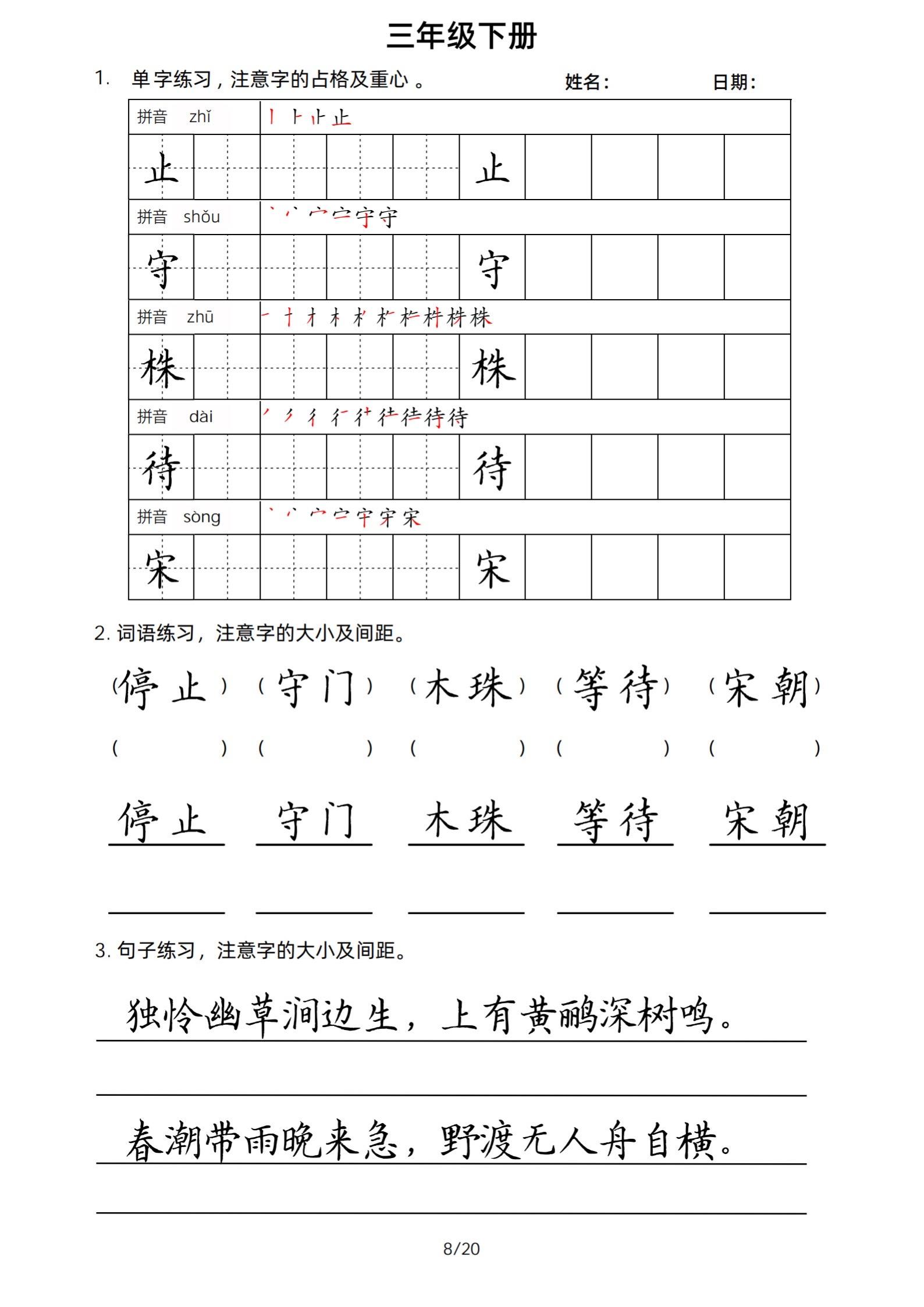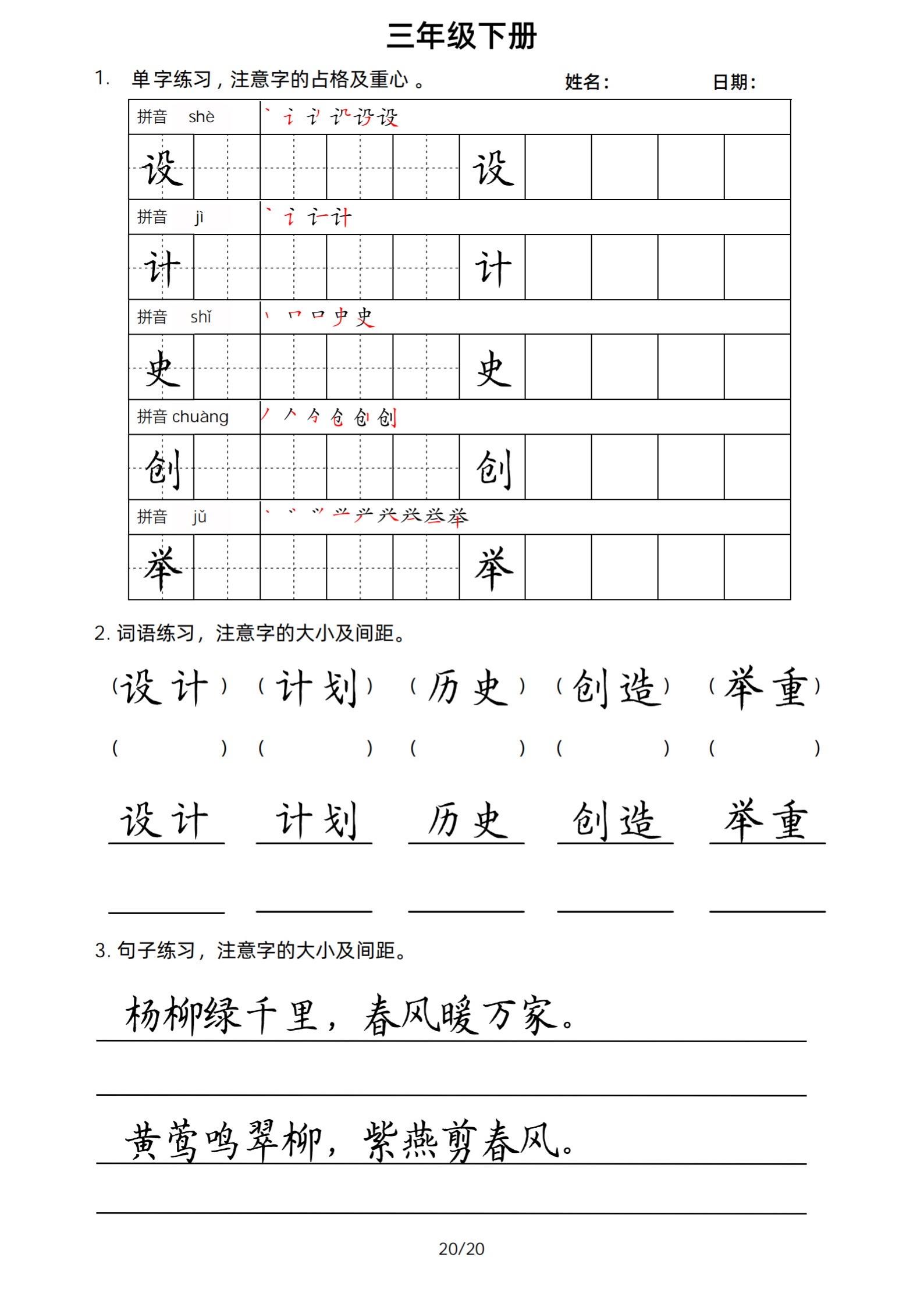 2026年春小学三年级下册生字帖课贴。小学语文 字帖,字音,笔画顺序,组词手写笔记教材 study打卡 永春县最便宜打印店 八方文印店。有需要可以自行下载打印出来