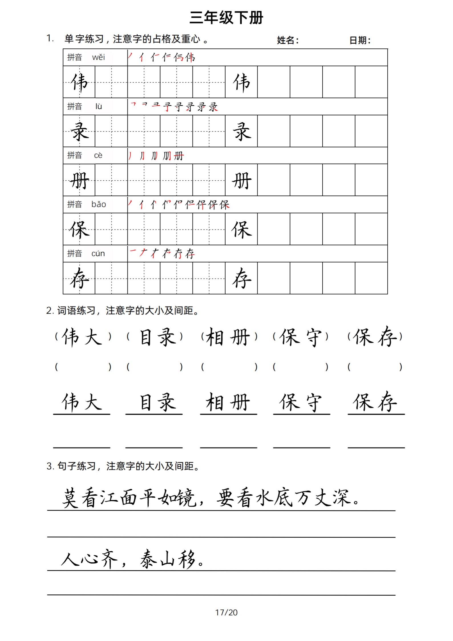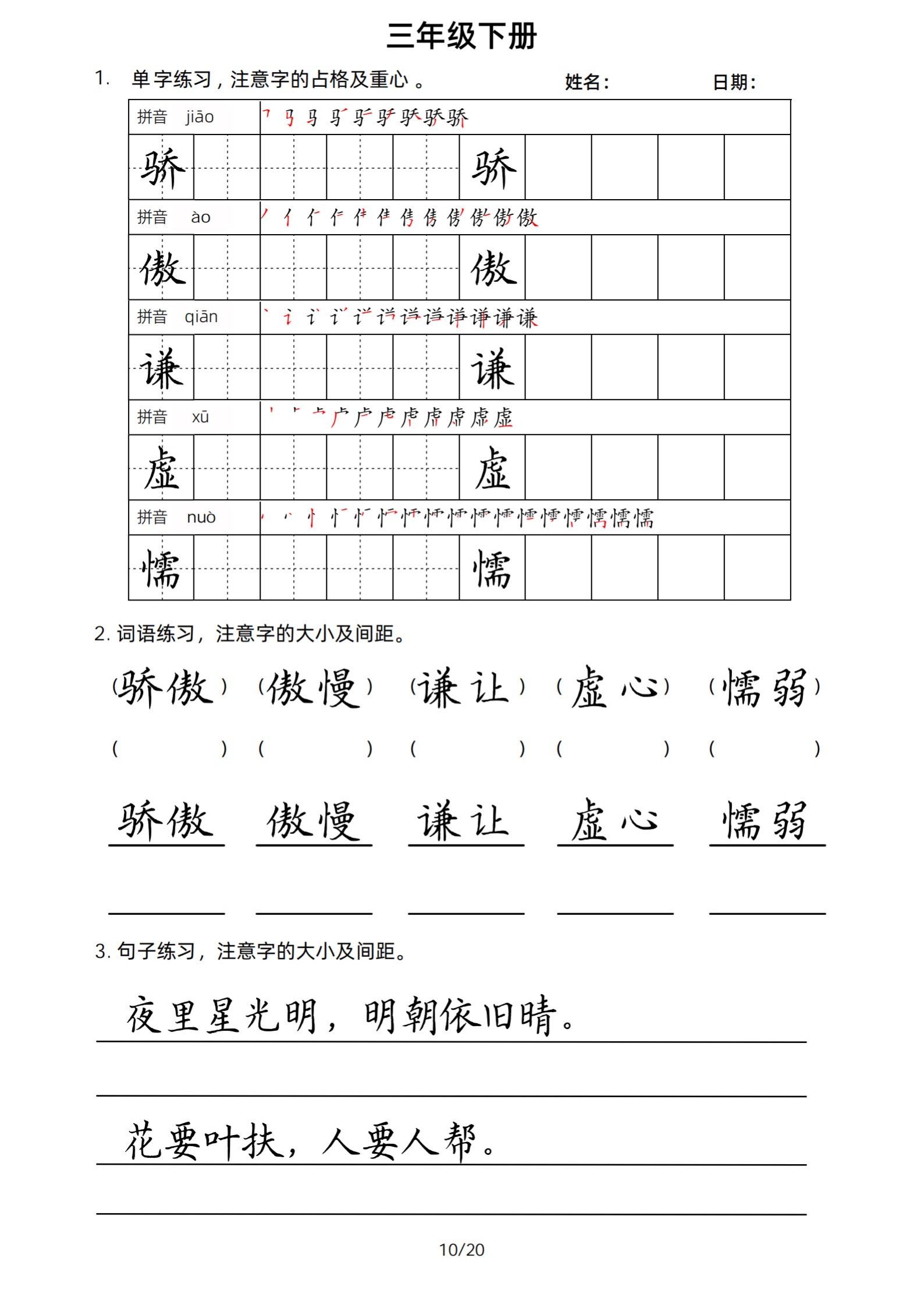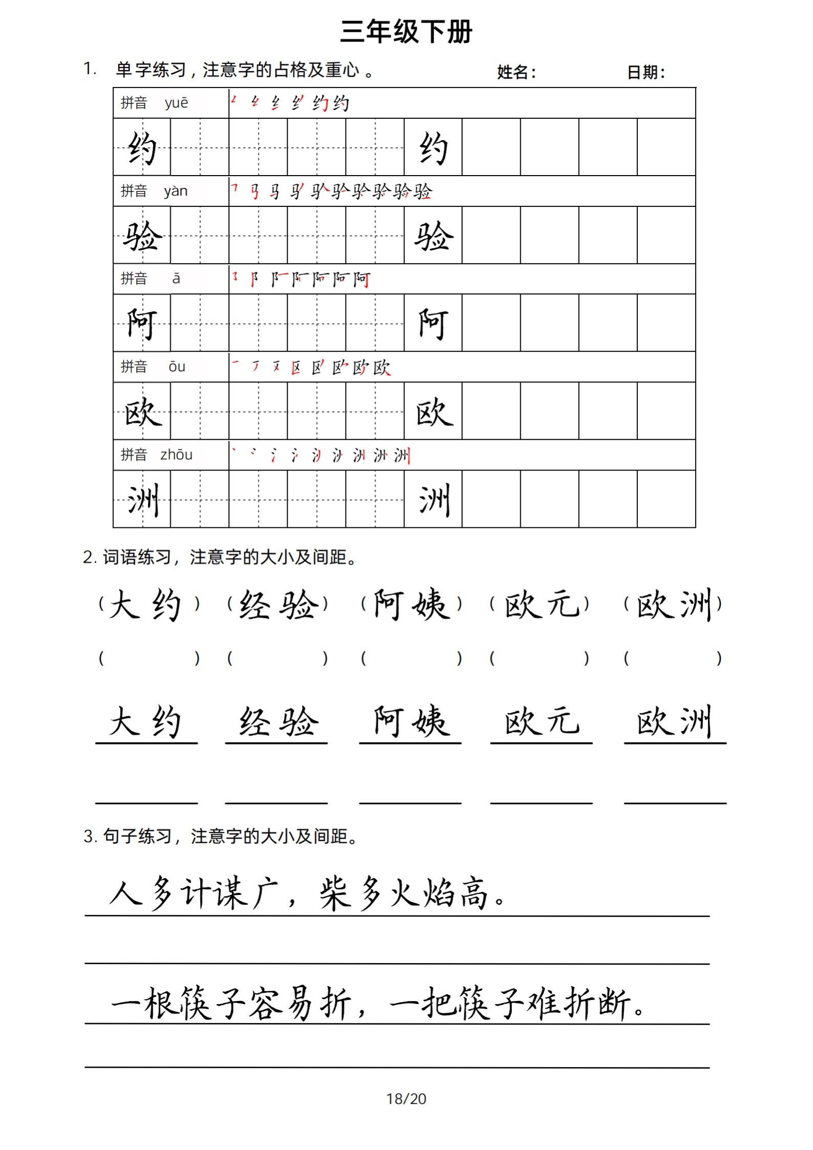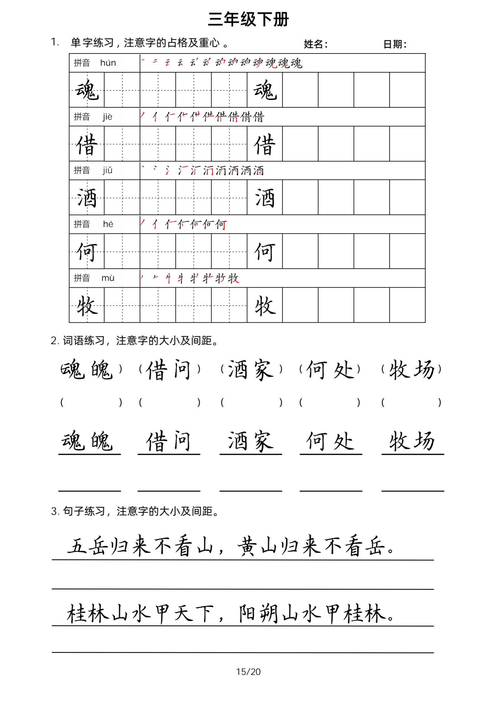 2026年春小学三年级下册生字帖课贴。小学语文 字帖,字音,笔画顺序,组词手写笔记教材 study打卡 永春县最便宜打印店 八方文印店。有需要可以自行下载打印出来