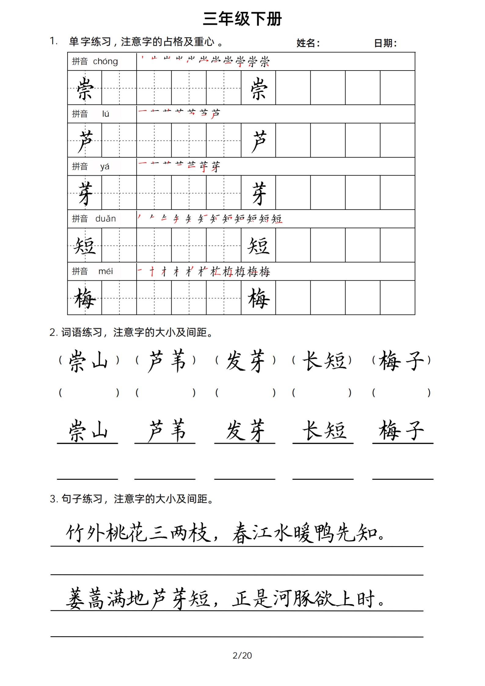 2026年春小学三年级下册生字帖课贴。 字帖,字音,笔画顺序,组词 ...