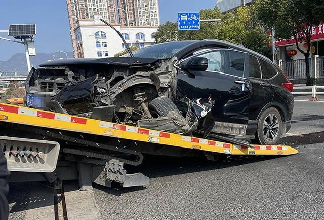 1月18日,福州市民张先生向记者报料,晋安区沁园路与沁河路交界处的沁河路上发生一起交通事故,一辆黑色SUV撞上道路中间铁栏杆,车头损毁严重,万幸无人员伤亡,交警已赶赴现场处置。