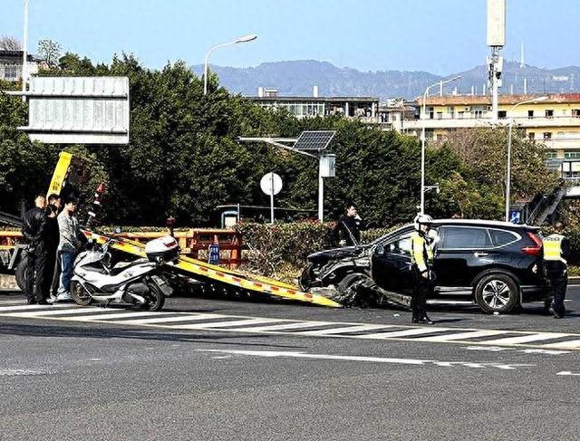 拖车正准备将事故车拖离