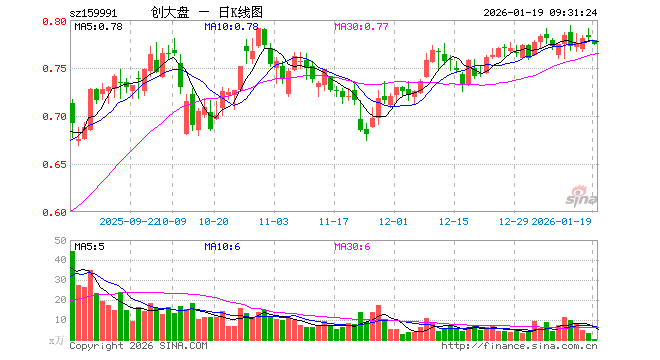 1月19日,创大盘ETF(159991)开盘跌0.38%,报0.779元。创大盘ETF(159991)重仓股方面,宁德时代开盘跌0.24%,中际旭创跌1.94%,东方财富跌0.38%,新易盛跌1.25%,阳光电源跌0.58%,胜宏科技跌3.97%,汇川技术涨0.00%,迈瑞医疗涨0.00%,亿纬锂能涨0.16%,同花顺跌0.27%。