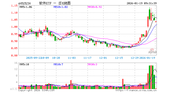 1月19日,软件ETF(515230)开盘跌1.24%,报1.032元。软件ETF(515230)重仓股方面,科大讯飞开盘涨0.13%,同花顺跌0.27%,金山办公跌0.93%,指南针跌0.42%,恒生电子跌0.81%,润和软件跌0.05%,三六零跌0.92%,拓维信息跌0.79%,用友网络涨0.00%。