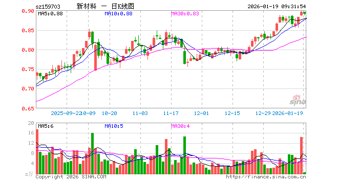 新材料ETF(159703)业绩比较基准为中证新材料主题指数收益率,管理人为天弘基金管理有限公司,基金经理为祁世超,成立(2021-05-27)以来回报为-10.78%,近一个月回报为14.74%。