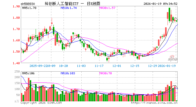 1月19日,科创板人工智能ETF(588930)开盘跌0.56%,报1.770元。科创板人工智能ETF(588930)重仓股方面,澜起科技开盘跌0.76%,芯原股份涨0.00%,寒武纪跌0.14%,金山办公跌0.93%,石头科技跌0.65%,晶晨股份跌0.39%,恒玄科技跌0.29%,云天励飞跌1.63%,复旦微电跌0.74%,乐鑫科技跌0.90%。