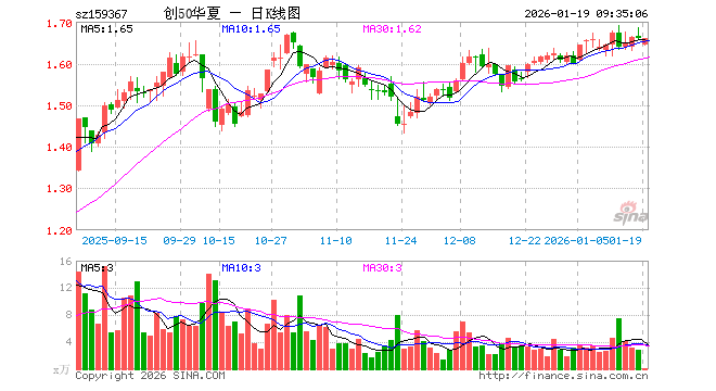 1月19日,创业板50ETF华夏(159367)开盘跌0.84%,报1.645元。创业板50ETF华夏(159367)重仓股方面,宁德时代开盘跌0.24%,中际旭创跌1.94%,东方财富跌0.38%,新易盛跌1.25%,阳光电源跌0.58%,胜宏科技跌3.97%,汇川技术涨0.00%,迈瑞医疗涨0.00%,亿纬锂能涨0.16%,同花顺跌0.27%。