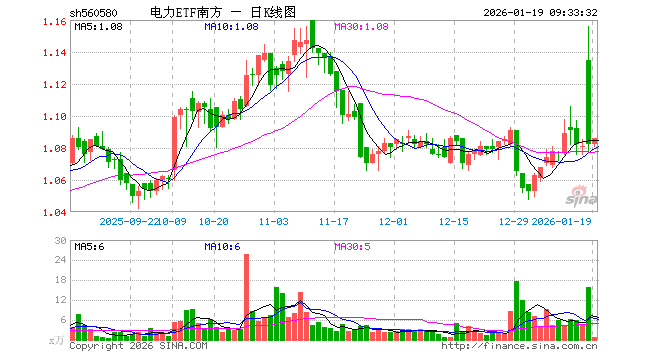 1月19日,电力ETF南方(560580)开盘涨0.00%,报1.082元。电力ETF南方(560580)重仓股方面,长江电力开盘涨0.34%,中国核电涨0.11%,三峡能源涨0.24%,国电电力涨0.21%,永泰能源跌0.62%,国投电力涨0.08%,华能国际跌0.54%,上海电力涨0.05%,中国广核涨0.00%,川投能源涨0.00%。