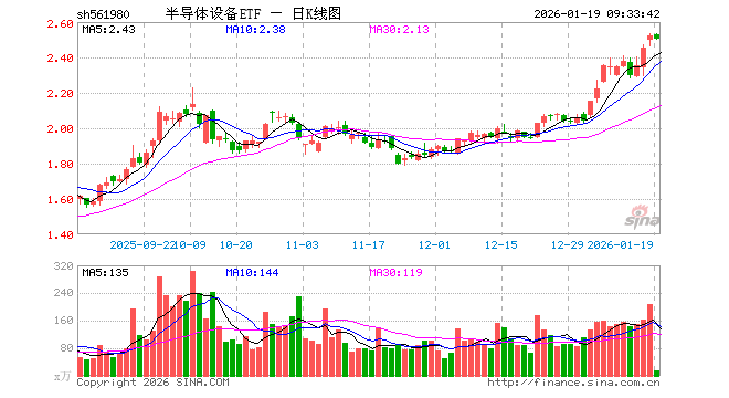 1月19日,半导体设备ETF(561980)开盘涨0.44%,报2.531元。半导体设备ETF(561980)重仓股方面,中微公司开盘涨2.25%,北方华创涨1.15%,寒武纪跌0.14%,中芯国际涨0.05%,海光信息涨0.68%,长川科技涨0.36%,华海清科涨1.43%,拓荆科技涨0.34%,南大光电涨1.66%,安集科技涨0.14%。