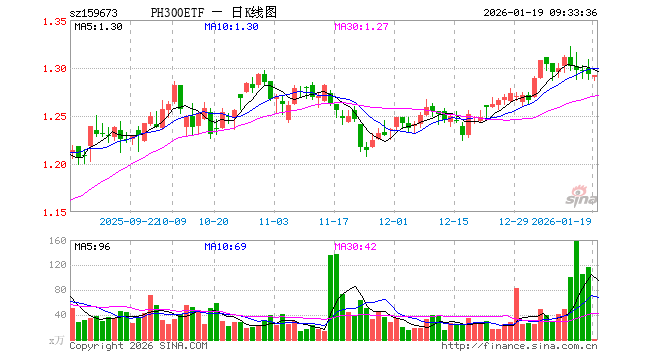 1月19日,沪深300ETF鹏华(159673)开盘跌0.23%,报1.290元。沪深300ETF鹏华(159673)重仓股方面,宁德时代开盘跌0.24%,贵州茅台跌0.01%,中国平安跌0.08%,招商银行涨0.03%,紫金矿业涨0.40%,新易盛跌1.25%,中际旭创跌1.94%,美的集团涨0.08%,东方财富跌0.38%,长江电力涨0.34%。